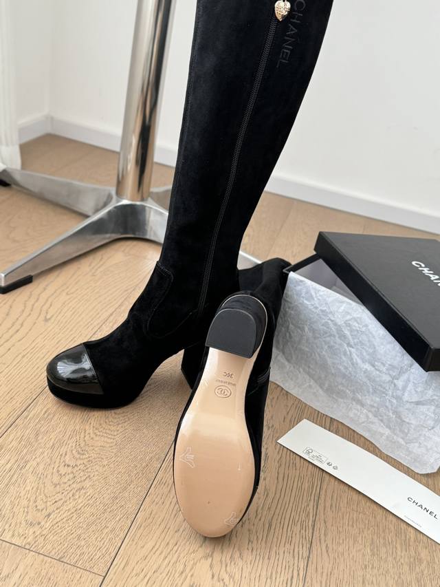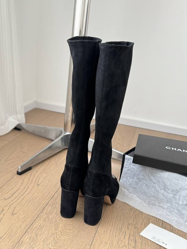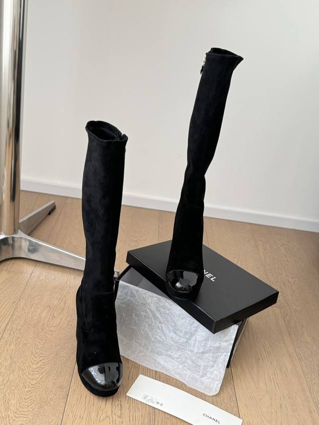 Chanel 24K新款弹力长靴 防水台系列 穿上立马大长腿 鞋面弹力皮 内里羊皮 真皮大底 Size:35-39 其他码数定做 编号34-3