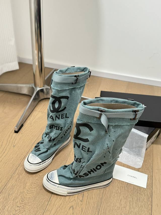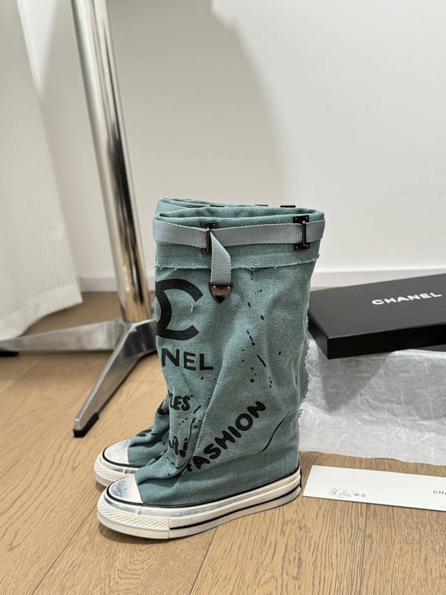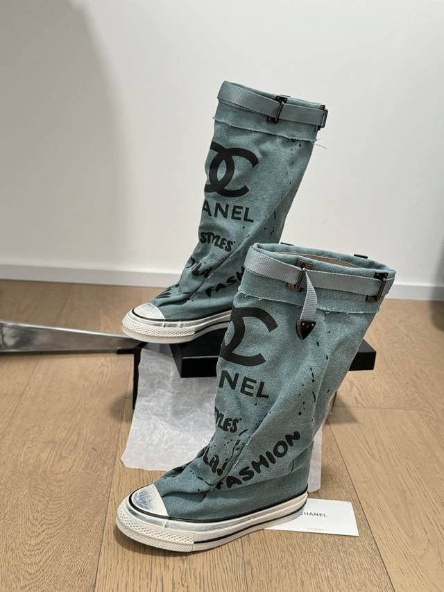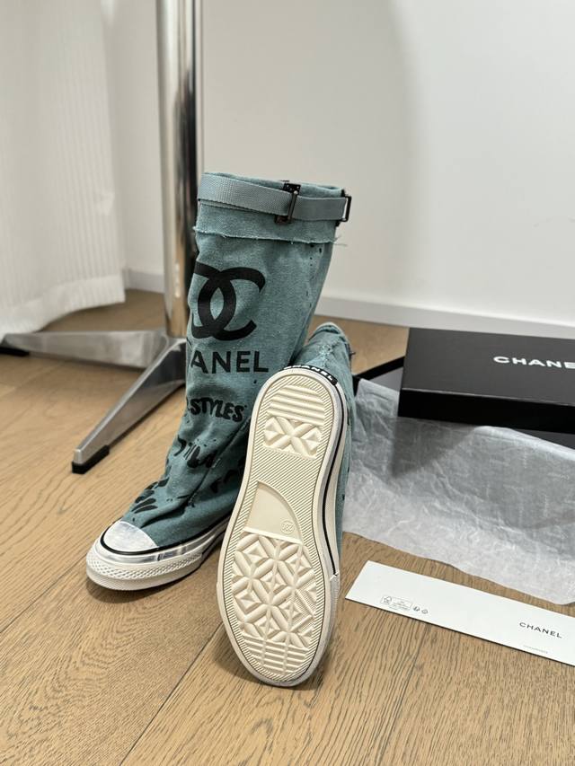 / Chanel 24S隐藏款帆布小白鞋! Vintage感满满,中古复刻款get啦~ 高邦帆布适配秋冬,涂鸦风格就很chanel。 配合袜子就很复古学院的感觉。