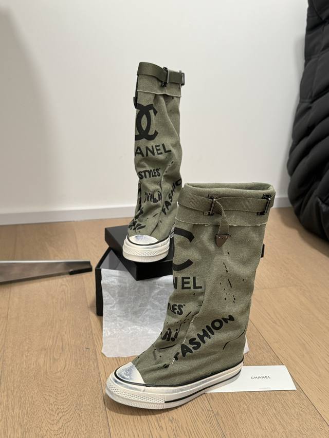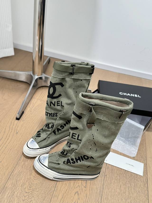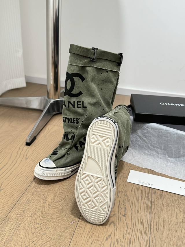 / Chanel 24S隐藏款帆布小白鞋! Vintage感满满,中古复刻款get啦~ 高邦帆布适配秋冬,涂鸦风格就很chanel。 配合袜子就很复古学院的感觉。