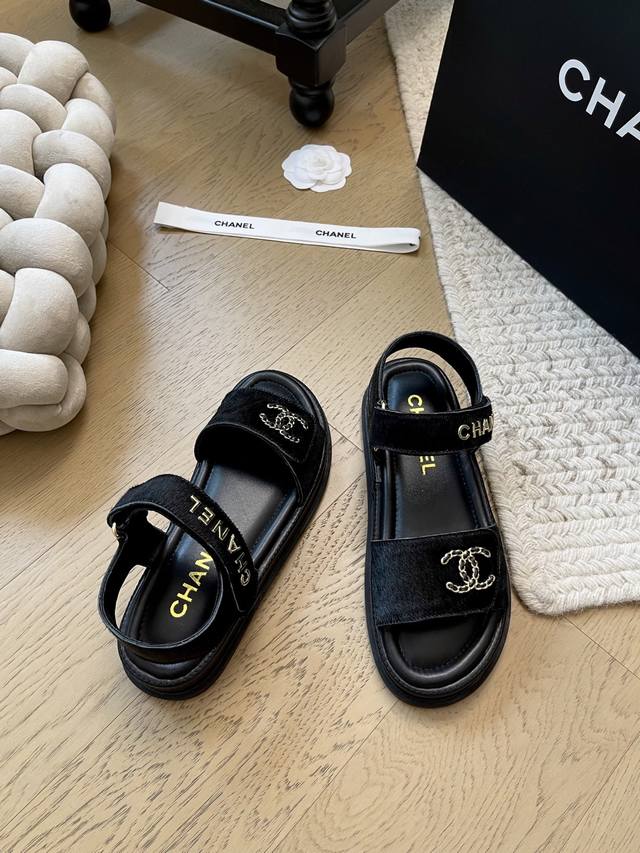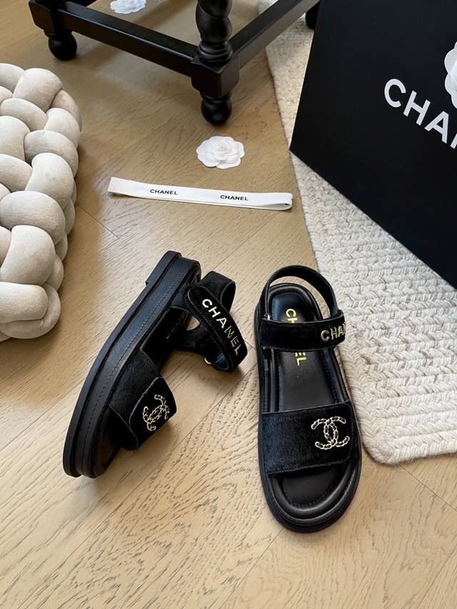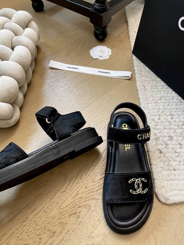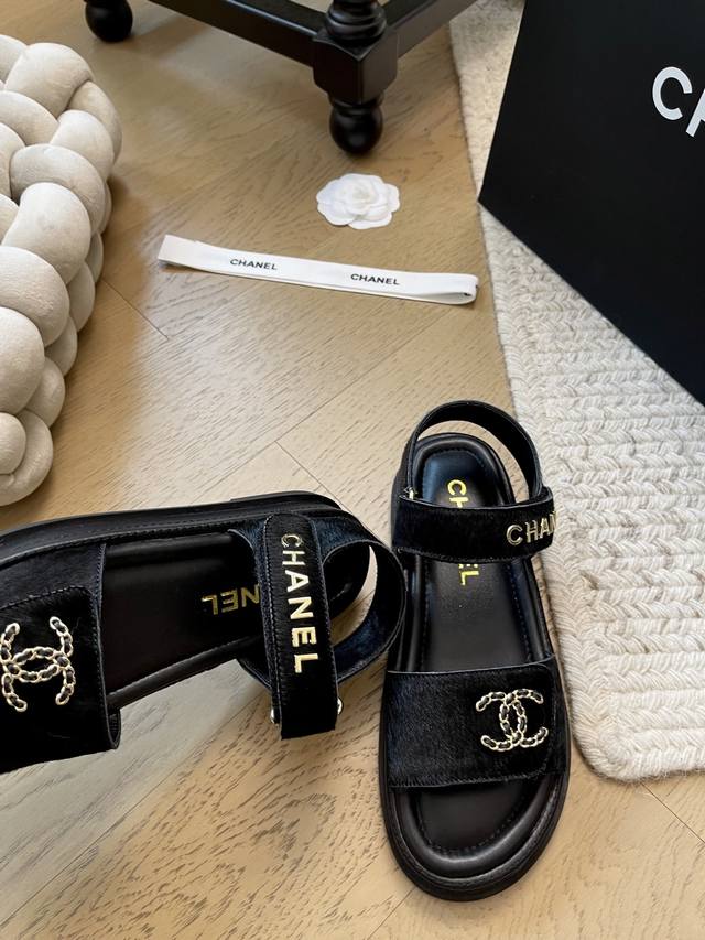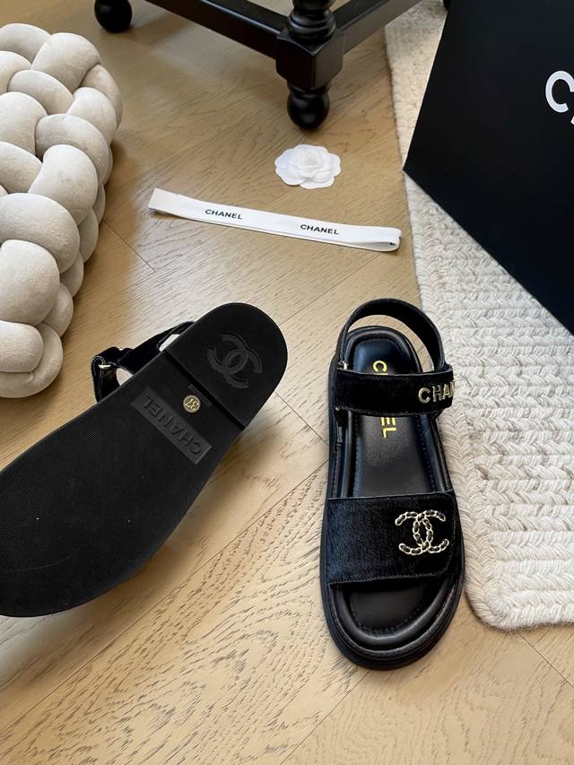 Chanel 25新款魔术贴凉鞋 顶级版本!抢先发售 鞋面马毛 内里羊皮 原版橡胶大底 码数:34-41 34 40 41定制不退不换