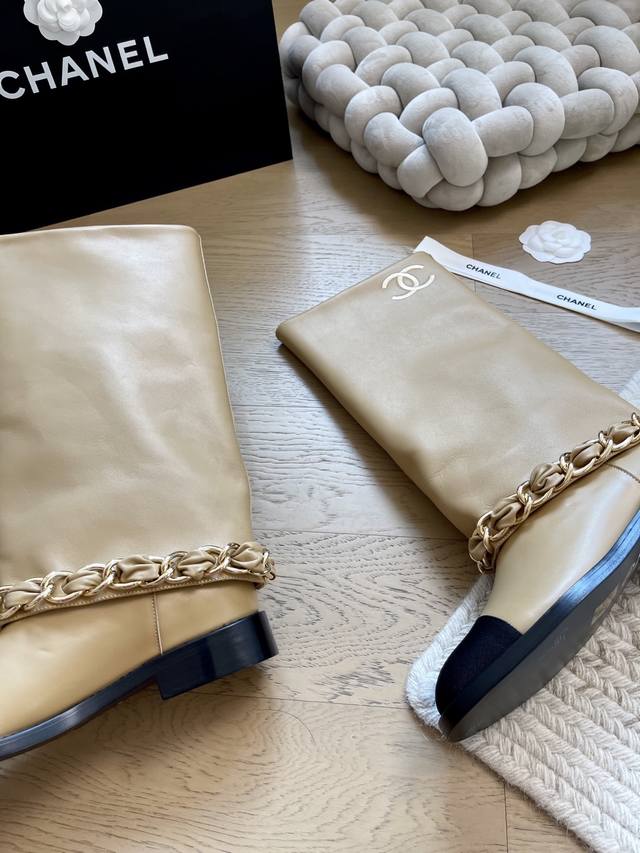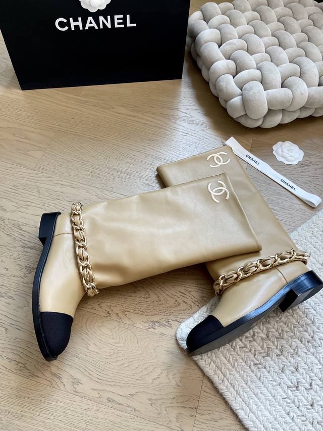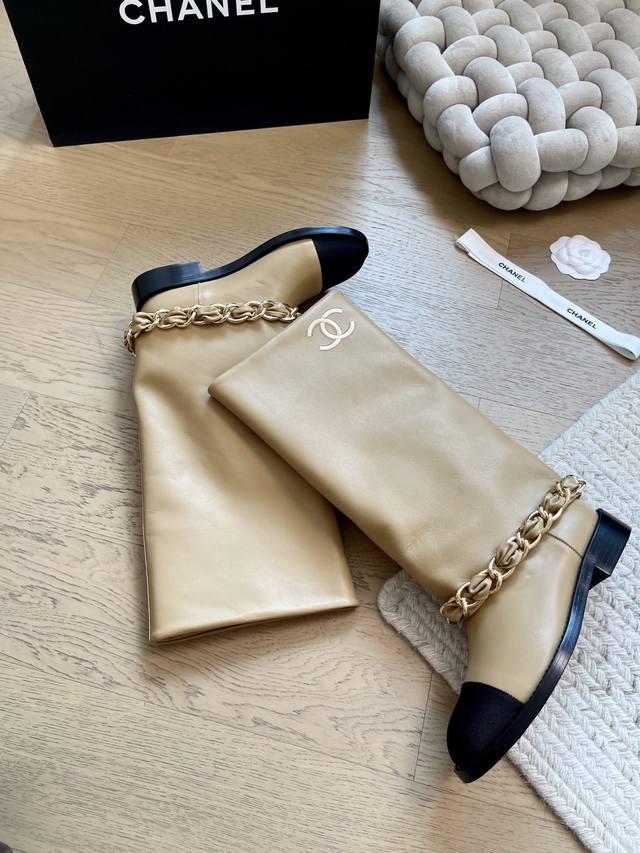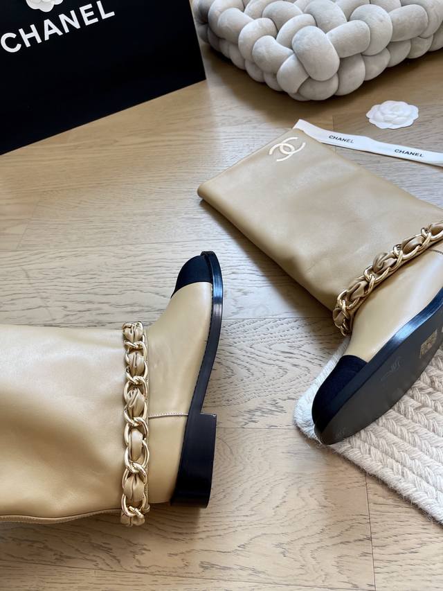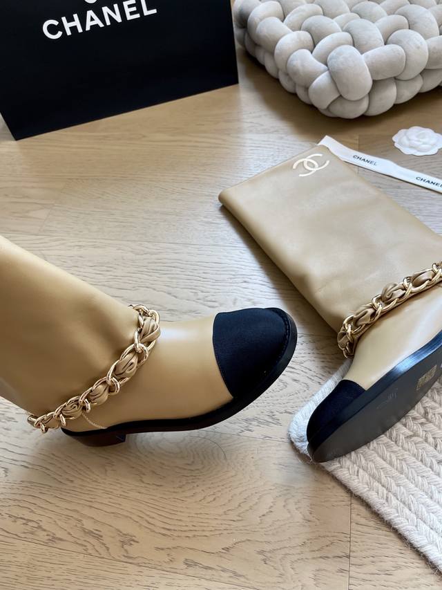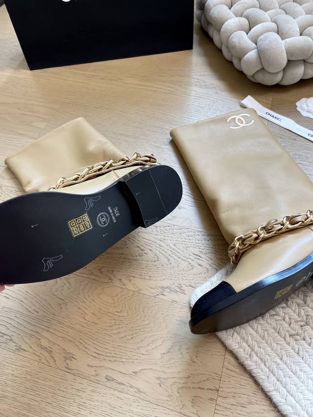 Chanel 25A新款链条长靴系列! 顶级版本!抢先发售 鞋面羊皮 内里羊皮 真皮大底 原版定制链条! 码数:34-41 34 40 41定制不退不换