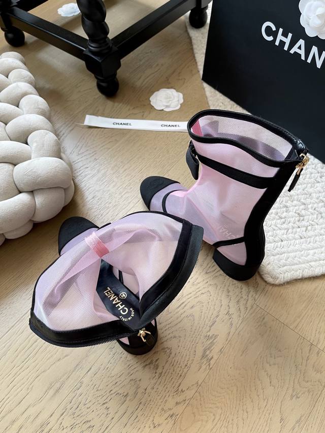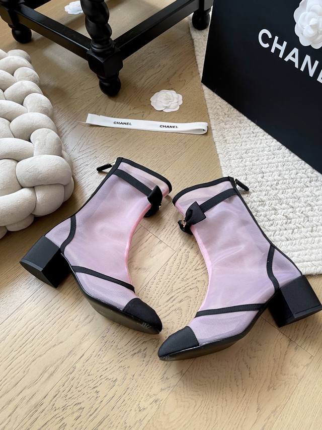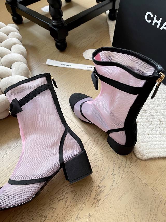 Chanel 25B新款蝴蝶结网纱短靴 顶级版本!抢先发售 爆款系列 鞋面网纱 内里羊皮 真皮大底 码数:34-41 34 40 41定制不退不换