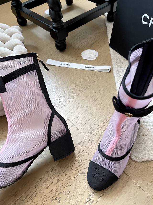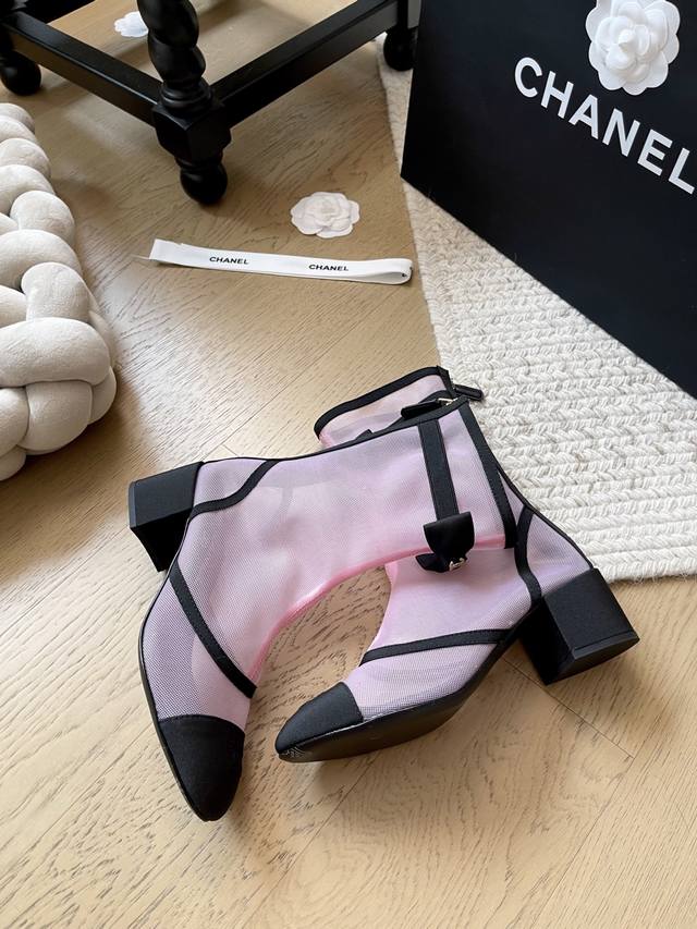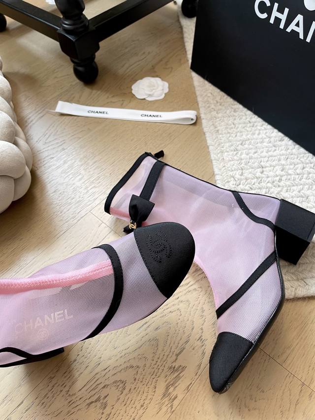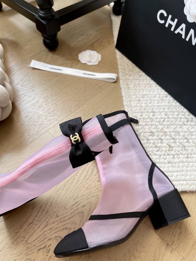 Chanel 25B新款蝴蝶结网纱短靴