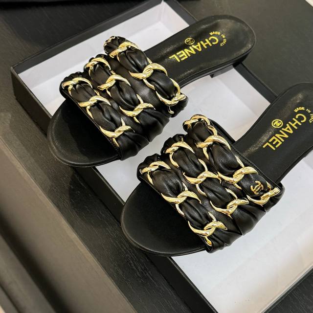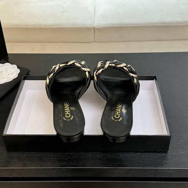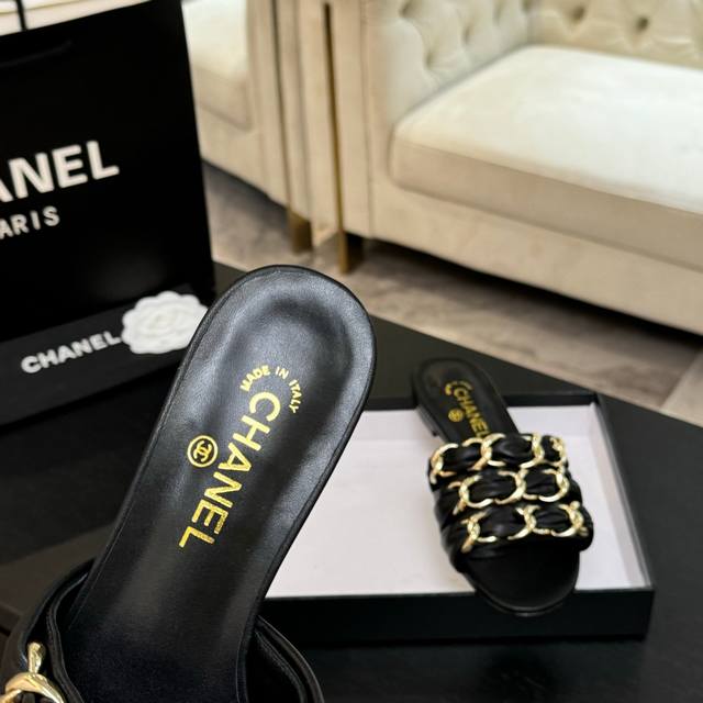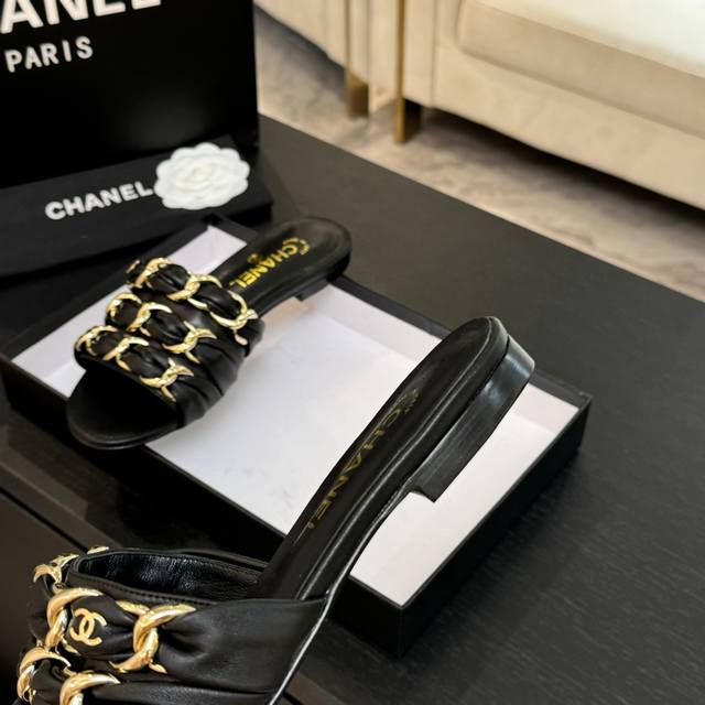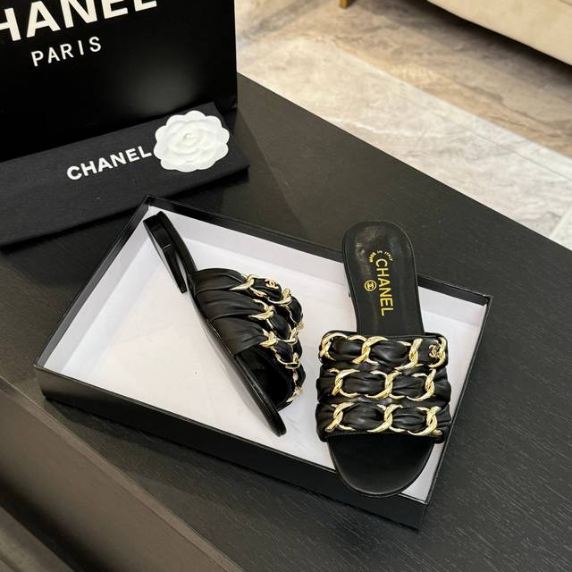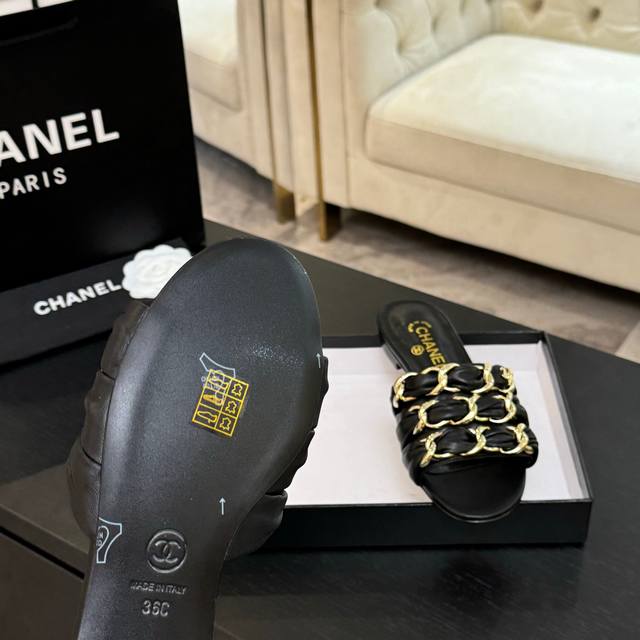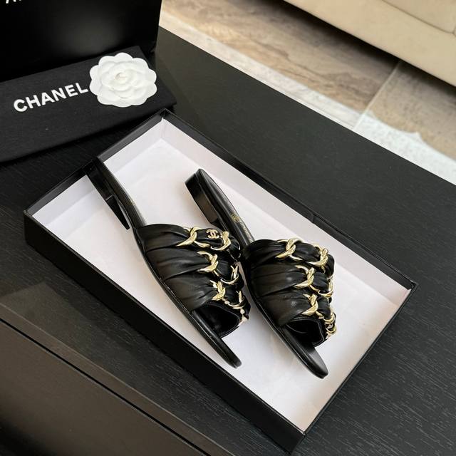 Chanel 25B 小香大链条平底高跟凉拖鞋 穿不腻的百搭凉拖 超经典的一款 休闲中带着精致 气质拿捏稳妥 今年春夏绝美加分宝藏! 链条凉鞋今年的大爆款,已被