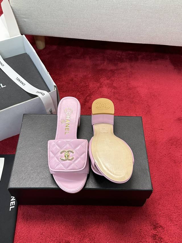 / Chanel 25C新款双c拖鞋!这一季的蜜儿拖上脚太好看了上脚巨显细长 灰常滴高级!鞋面羊皮 内里羊皮 真皮大底平底 4.5CmSize:35-39 40 4
