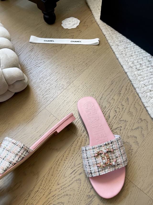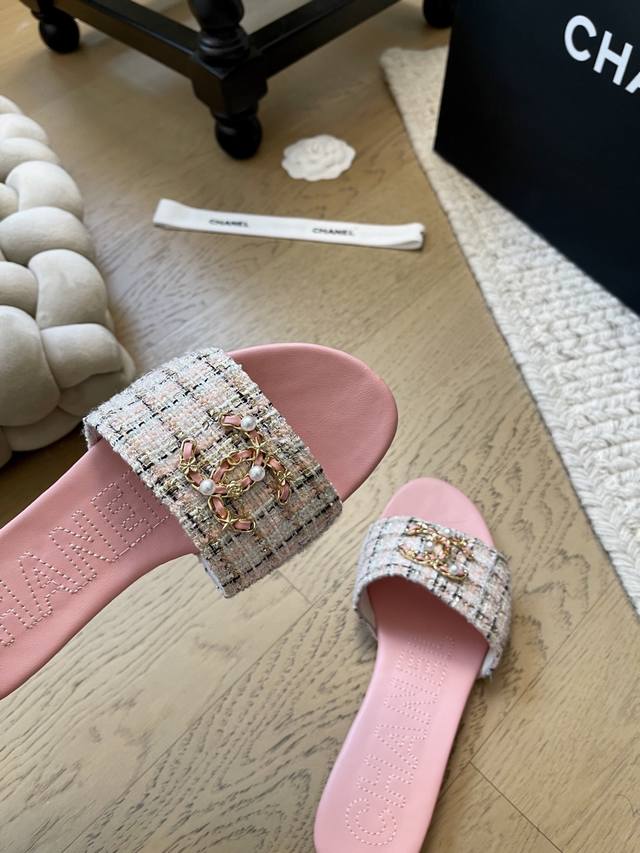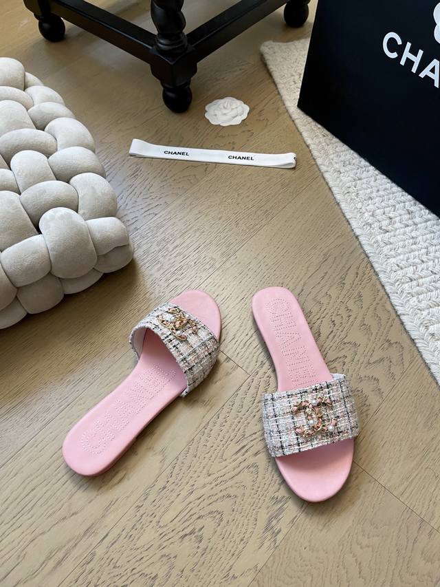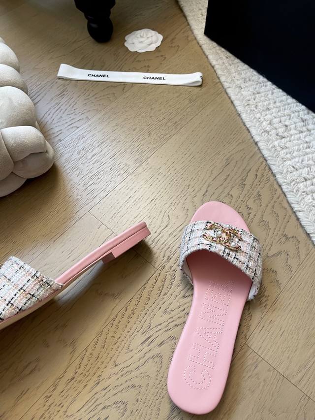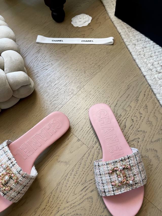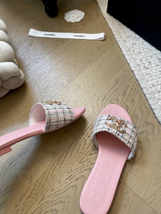 Chanel 25K新款双C珍珠拖鞋! 顶级版本!抢先发售 鞋面妮布 牛皮 垫脚羊皮 真皮大底! 码数:34-41 34 40 41定制不退不换