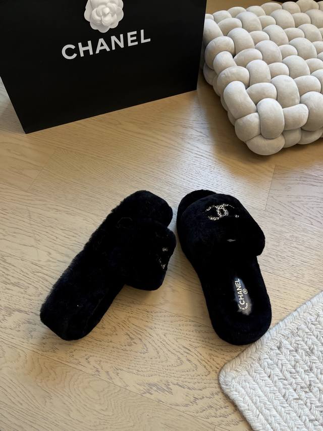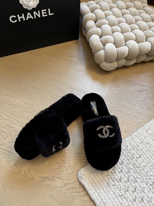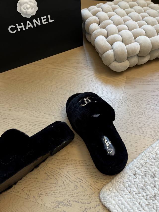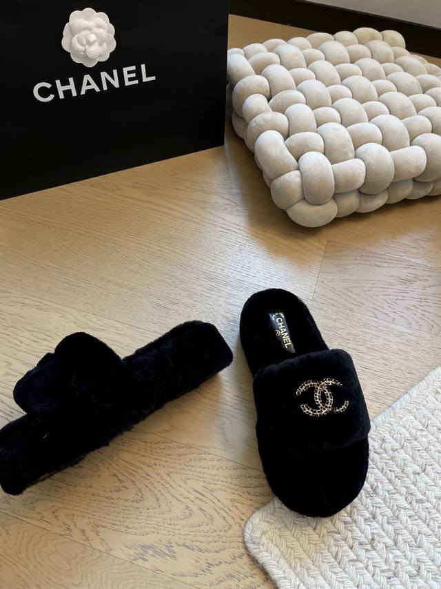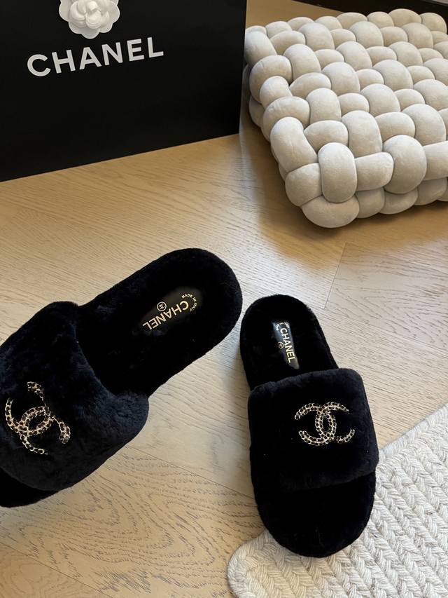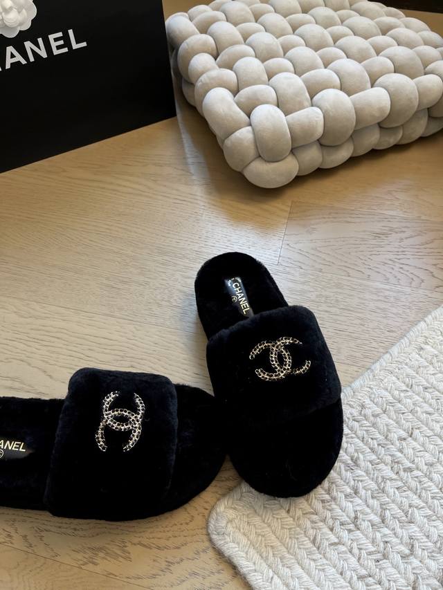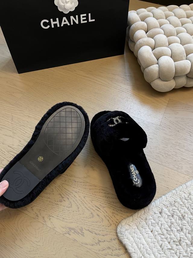 Chanel 25K新款毛毛拖鞋! 顶级版本!抢先发售 进口羊毛 手感细腻柔软丝滑 原版开模橡胶底 Size:35-39 40 41定制