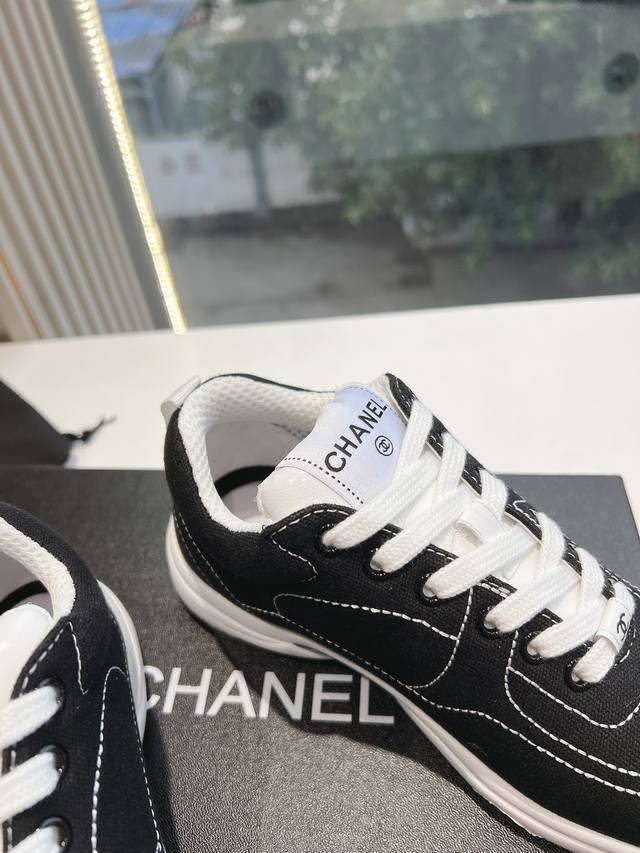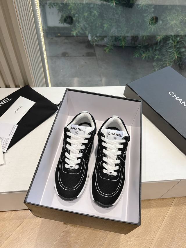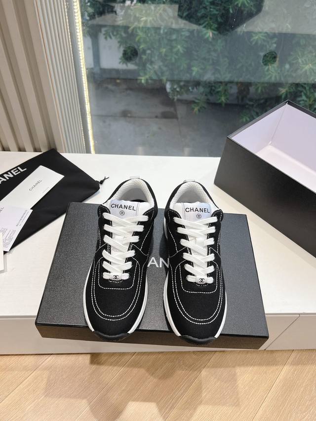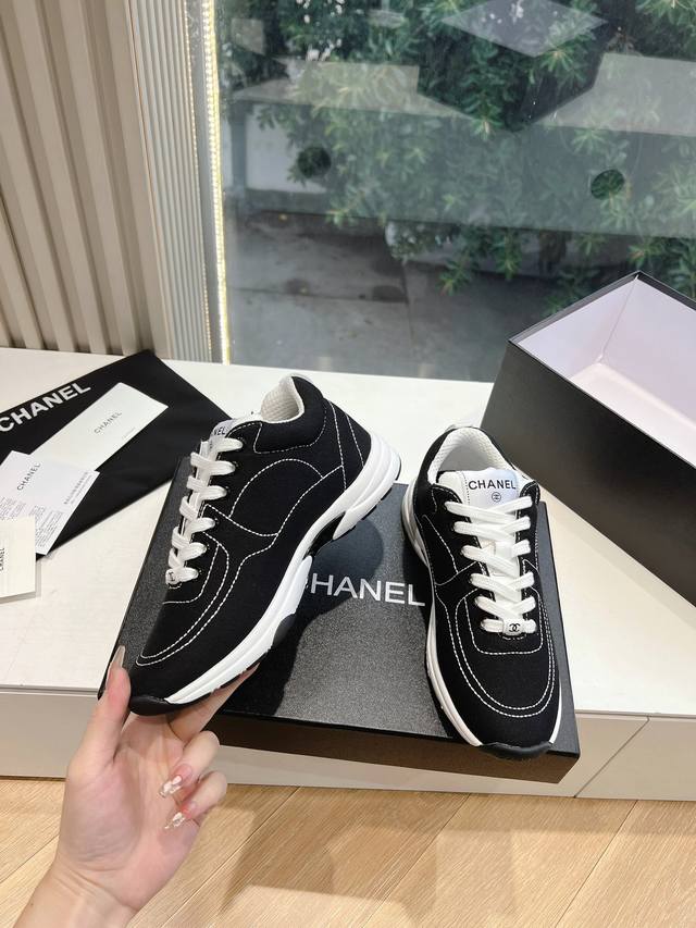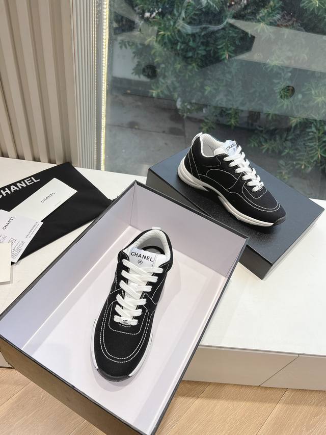 g059Chanel 香奈儿休闲板鞋 2025新款小香风麂皮圆头熊猫厚底运动鞋时尚增高鞋休闲鞋 面料:进口布面 内里:元版内里 鞋底:原版开模鞋底 全套包装 :