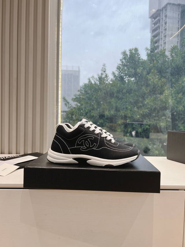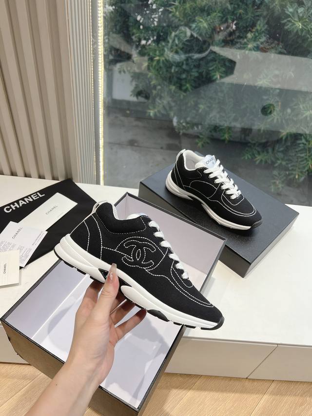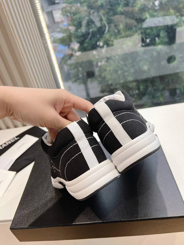 / g059Chanel 香奈儿休闲板鞋 2025新款小香风麂皮圆头熊猫厚底运动鞋时尚增高鞋休闲鞋 面料:进口布面 内里:元版内里 鞋底:原版开模鞋底 全套包装 :