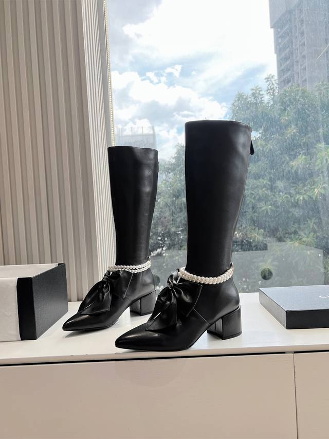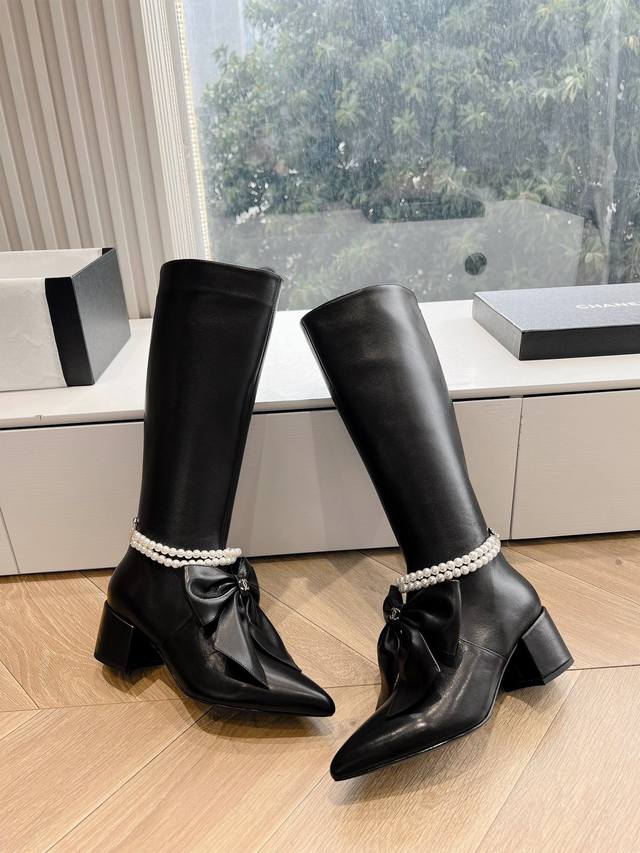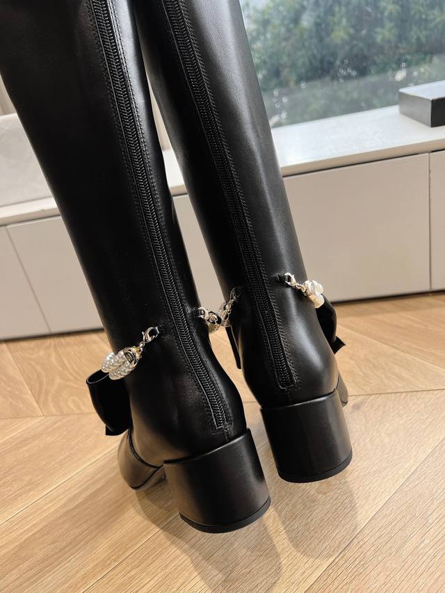 G299Chanel 香奈儿*小香秋冬新款大蝴蝶珍珠链条骑士靴这款骑士靴真的是帅气时尚的代表,靴筒chanel字母点缀 低调不失奢华!简约时尚个性又大气!自然流