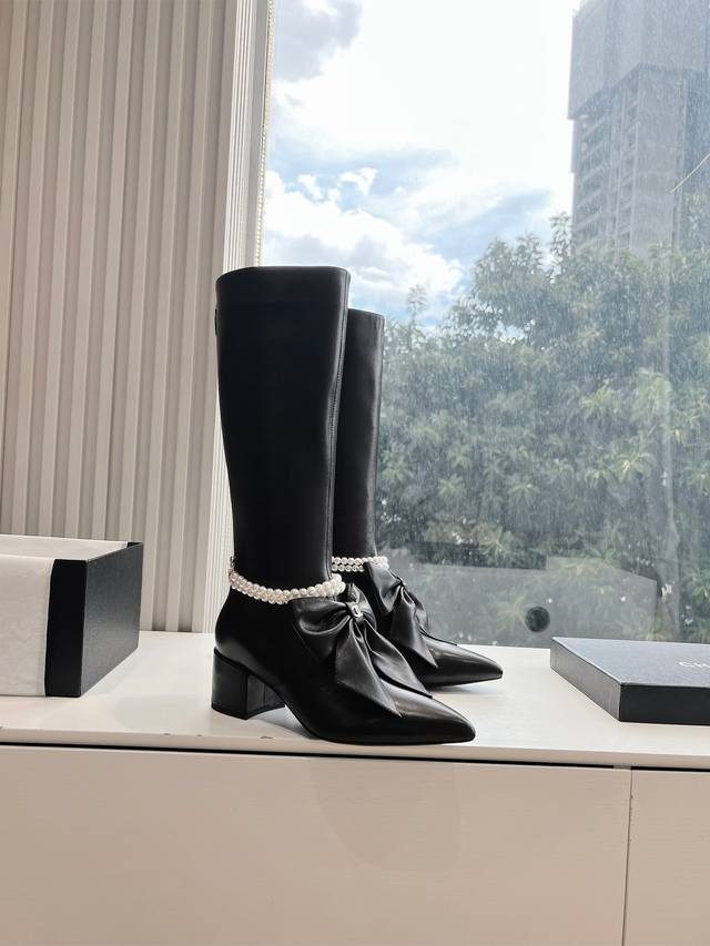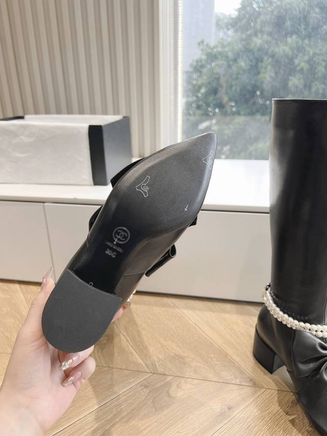 / G299Chanel 香奈儿*小香秋冬新款大蝴蝶珍珠链条骑士靴这款骑士靴真的是帅气时尚的代表,靴筒chanel字母点缀 低调不失奢华!简约时尚个性又大气!自然流