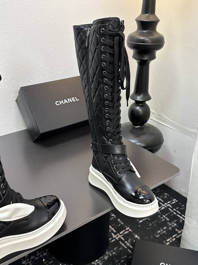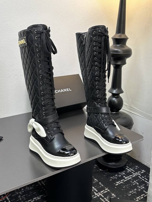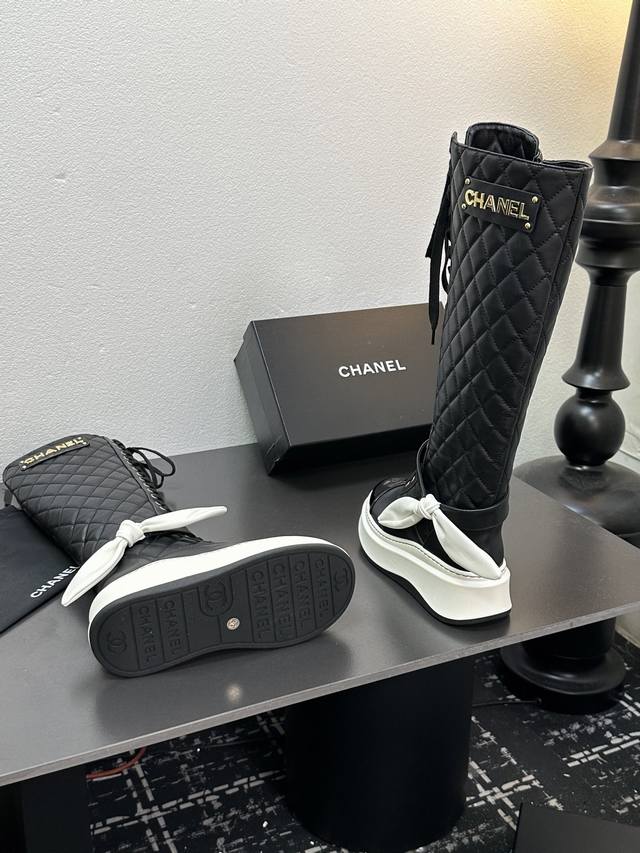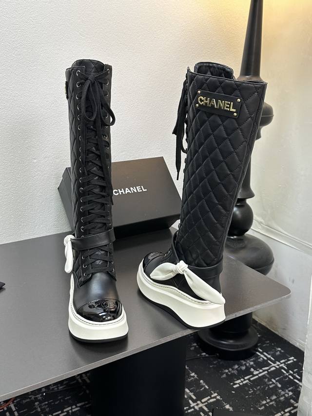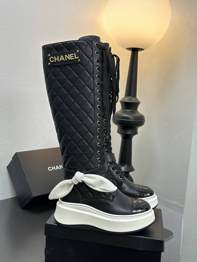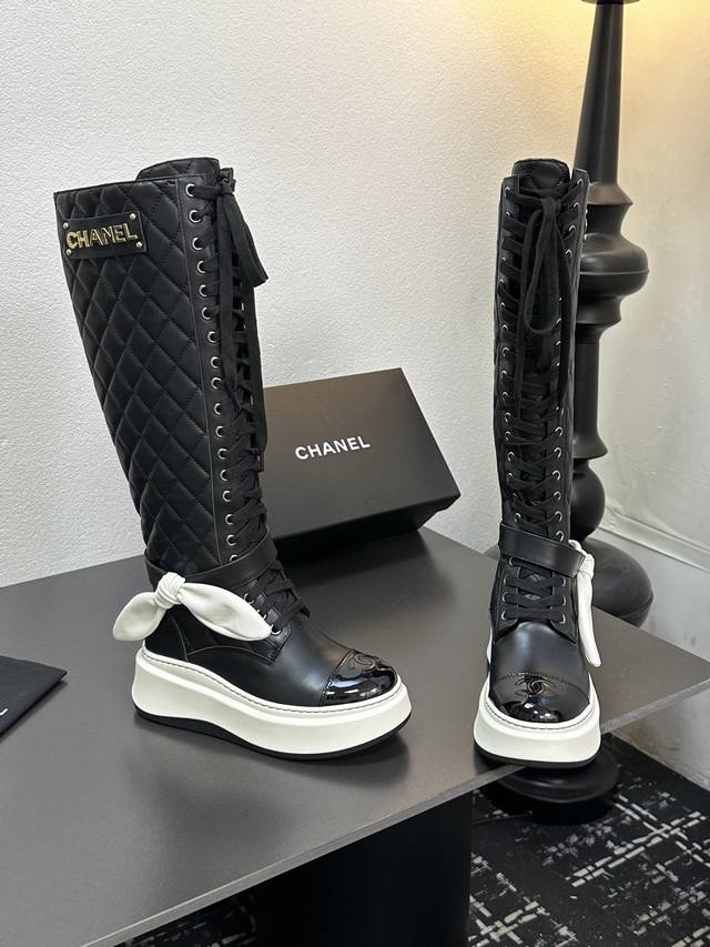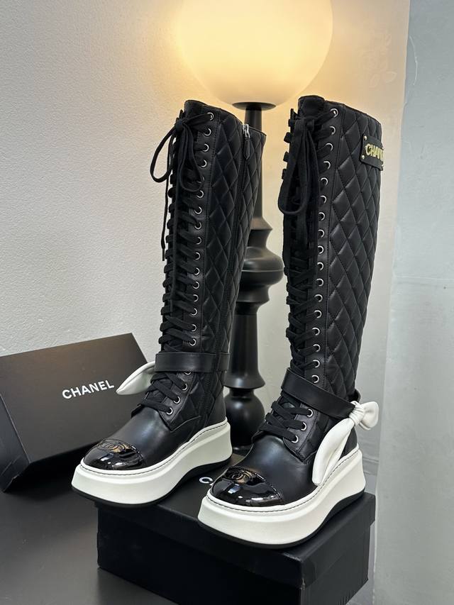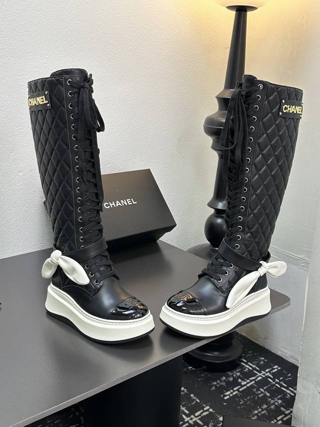 Chanel 2025S秋冬系列厚底蝴蝶结兔耳朵高靴长靴短靴,高筒和矮简两款分别用进囗牛皮打造,外增高度5Cm超显腿长,