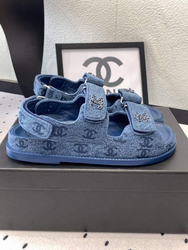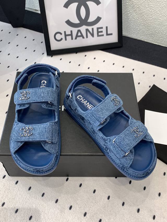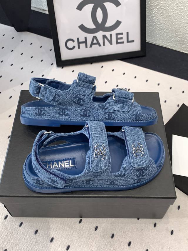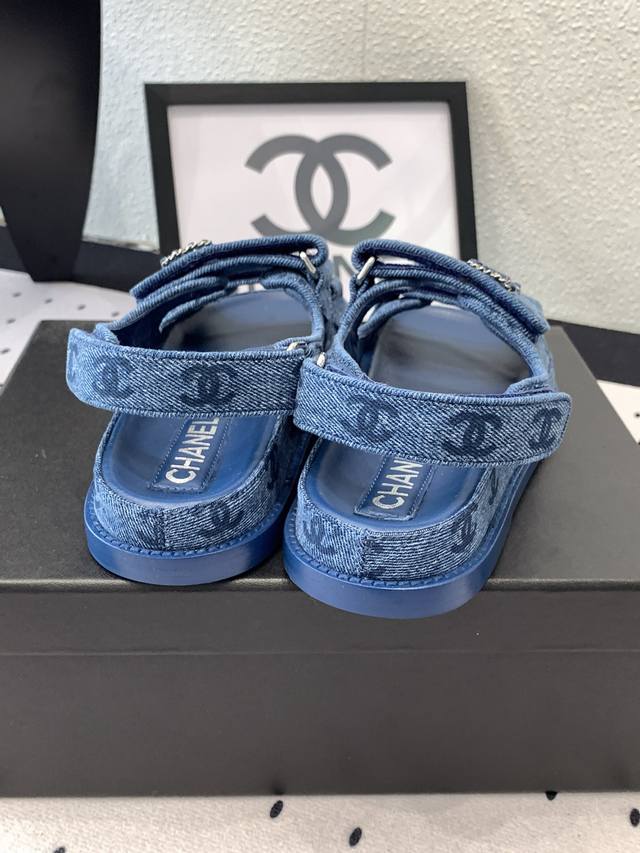 p390 Chanel新款早春沙滩鞋 顶级版本 简单的万能百搭神器 各大明星上脚神器 原版进口牛仔鞋面 进口羊皮内里垫脚 原版全层真皮大底 Size:35-40 (41订做)