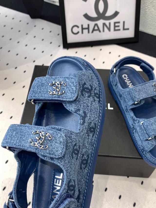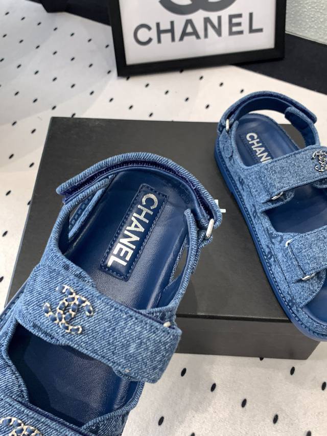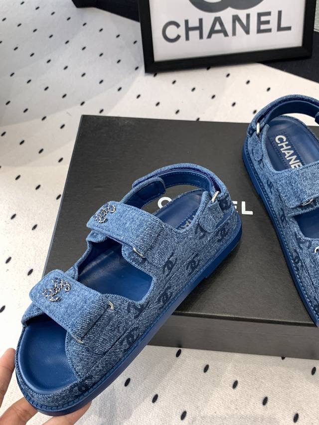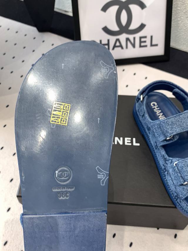 p390 Chanel新款早春沙滩鞋 顶级版本 简单的万能百搭神器 各大明星上脚神器 原版进口牛仔鞋面 进口羊皮内里垫脚 原版全层真皮大底 Size:35-40