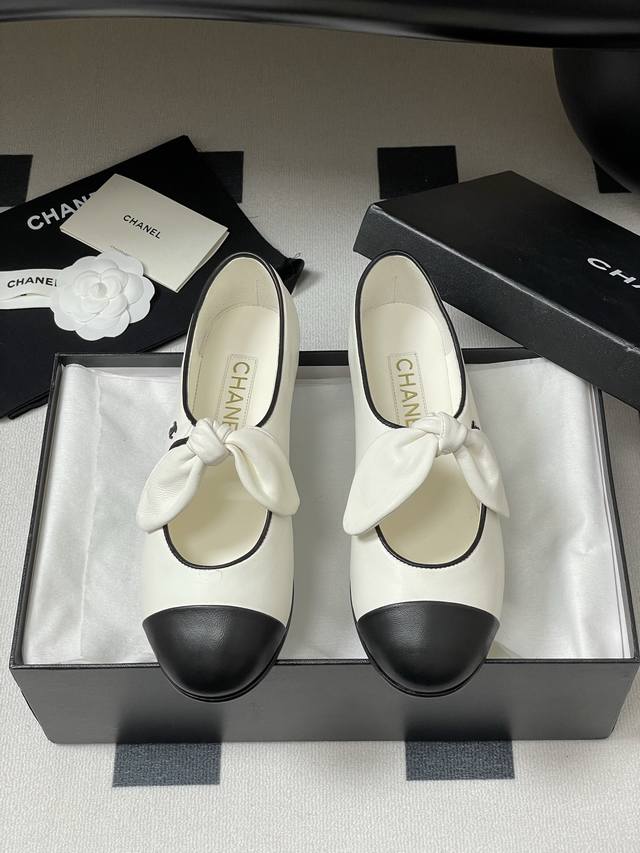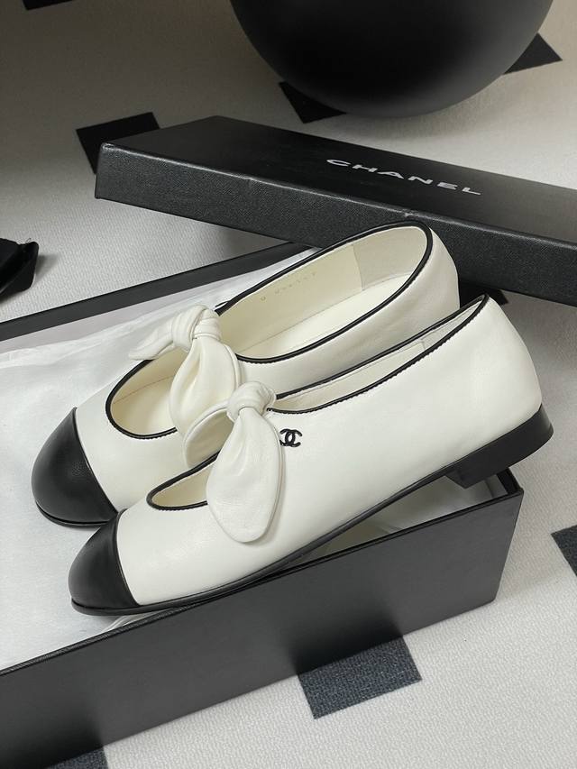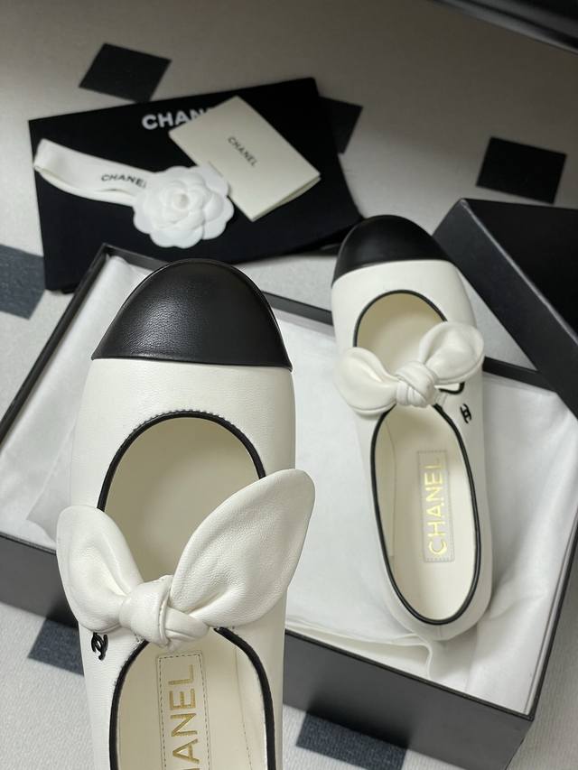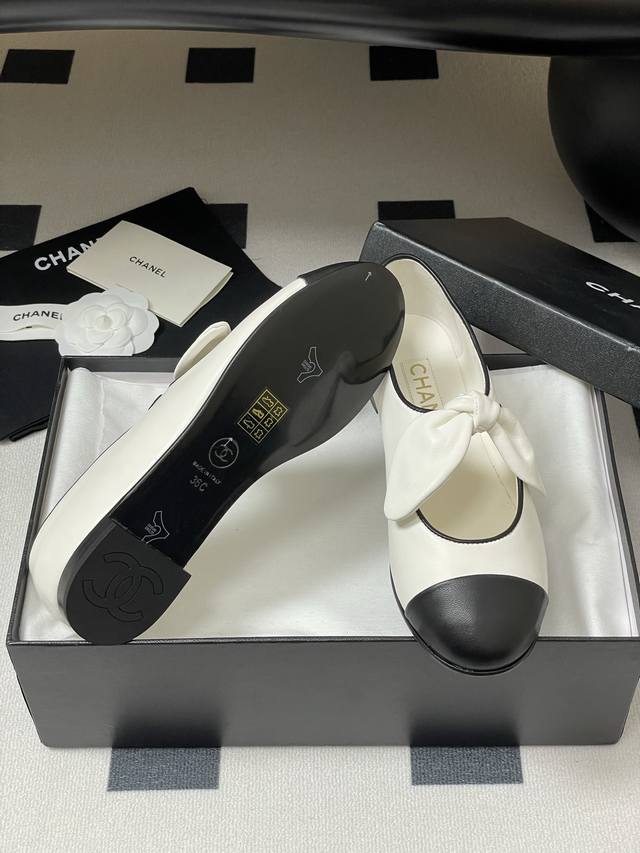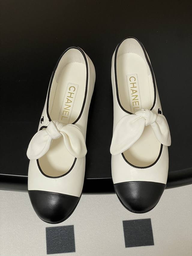 25C早春新款Chanel小香拼色蝴蝶结玛丽珍芭蕾舞鞋超火兔耳朵单鞋