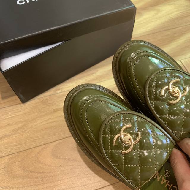 Chane*新款翻盖半拖鞋 经典logo装饰简约大气 精致的高级感 百搭又减龄 各种穿搭都能驾驭. 鞋面进口羊皮 内里垫脚羊皮...