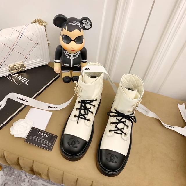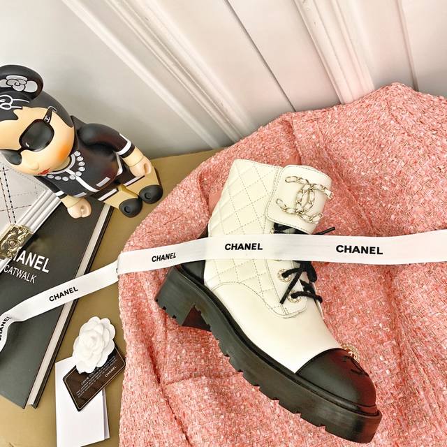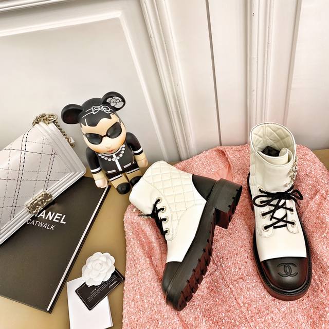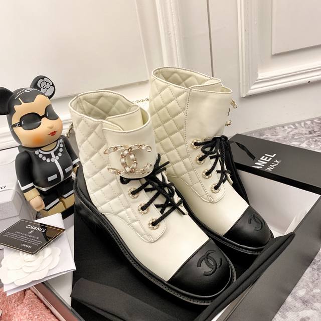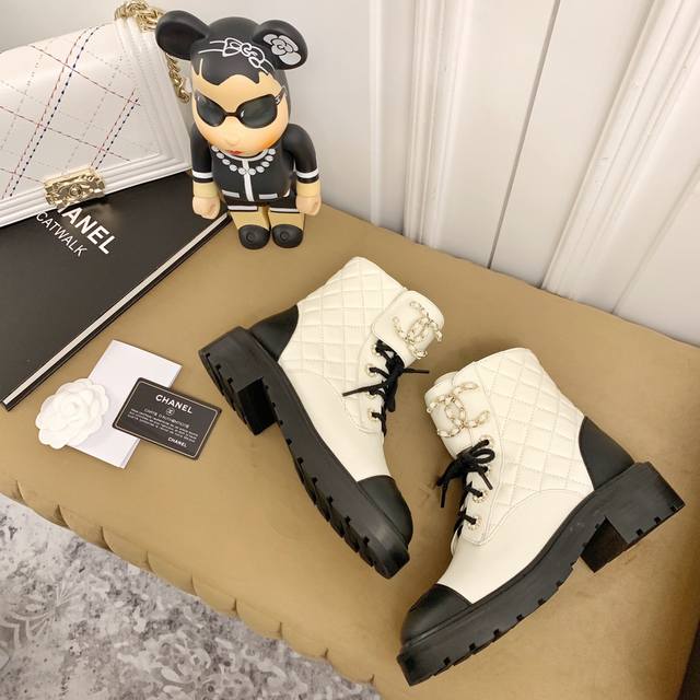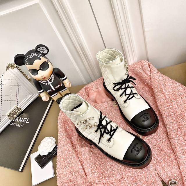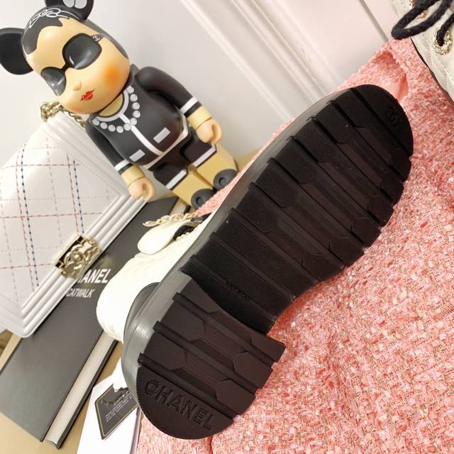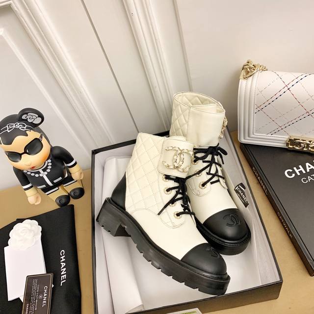 材质:鞋面黑色进口甩皱饱满菱格纹小牛皮;白色杏色进口小羊皮内里水染小羊皮原版小香logo防滑大底