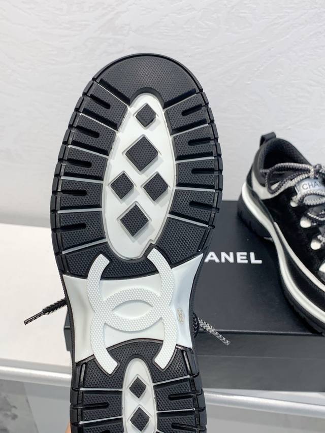 出厂价 高版本Chane*l香奈儿新款香家 25C秀款1:1原版开发熊猫休闲鞋 板鞋 英伦风小皮鞋新季爆款百搭神器面料: 进口头层牛皮+牛绒内里:进口网状透气内