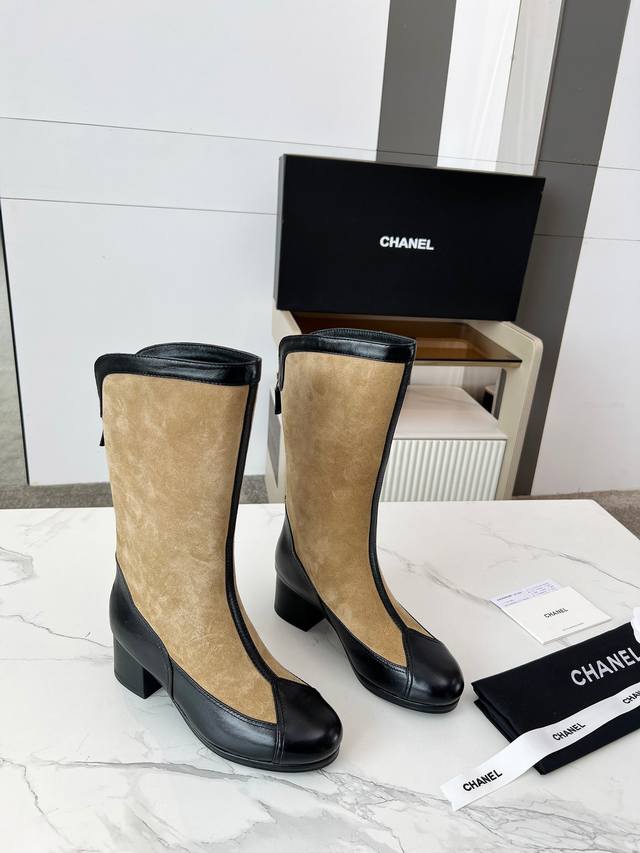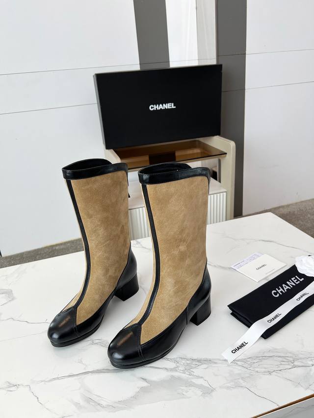 工厂p价 女装女鞋 运动原单 Chanel拼接短靴,经典与时尚的碰撞 黑与驼的配色,复古又高级 上脚瞬间气场拉满,是穿搭里的点睛之笔 每一步都踩着优雅,这就是香