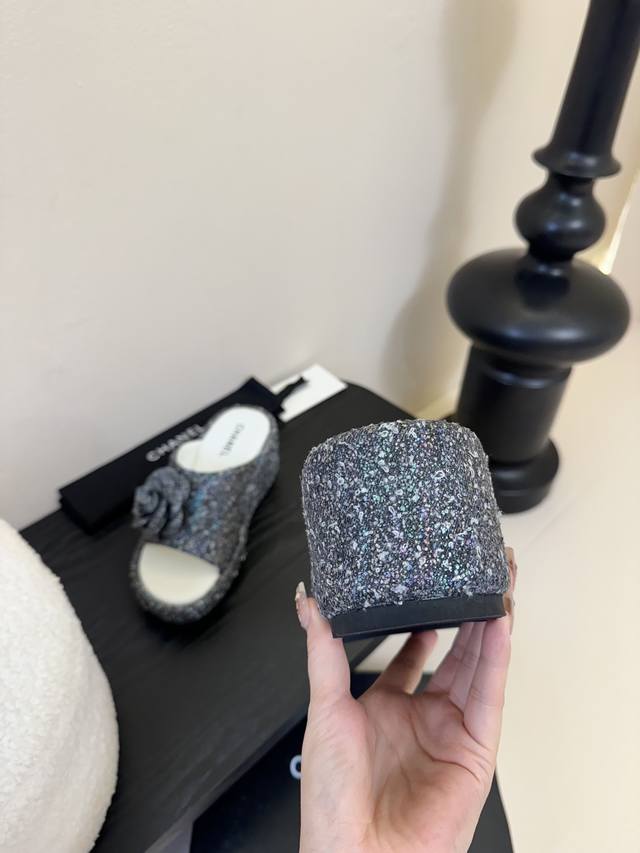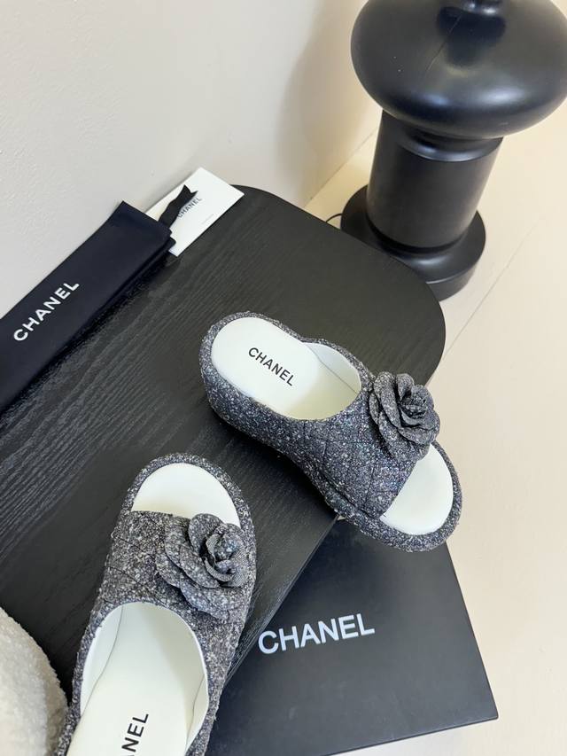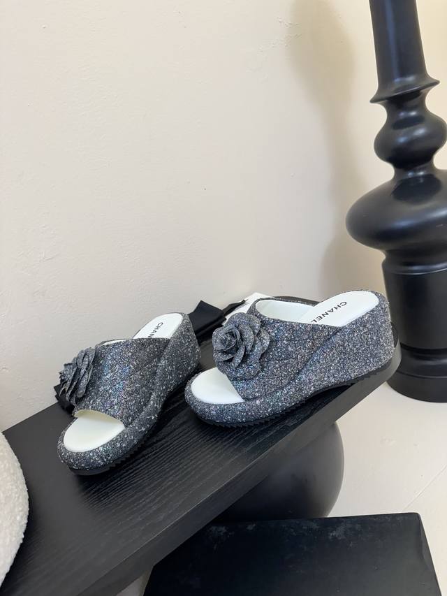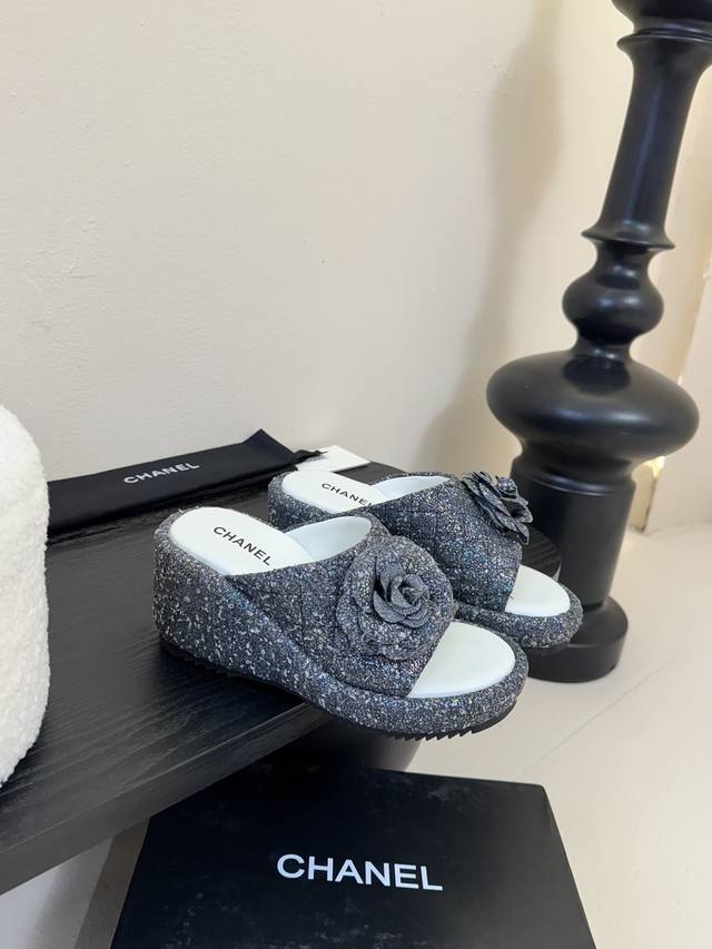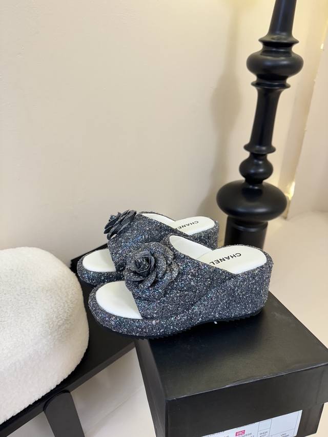 Chanel香奈儿 25Ss春夏新款小香山茶花厚底凉鞋拖坡跟一字拖鞋