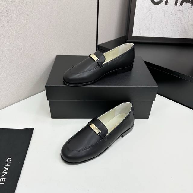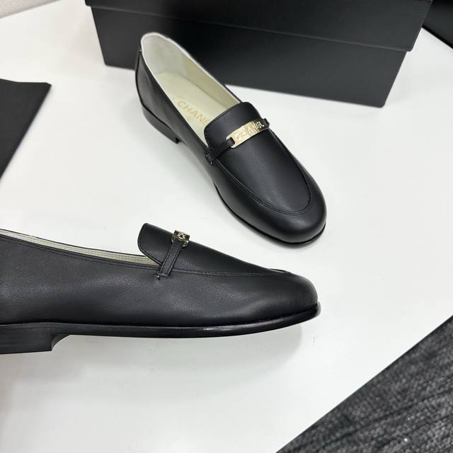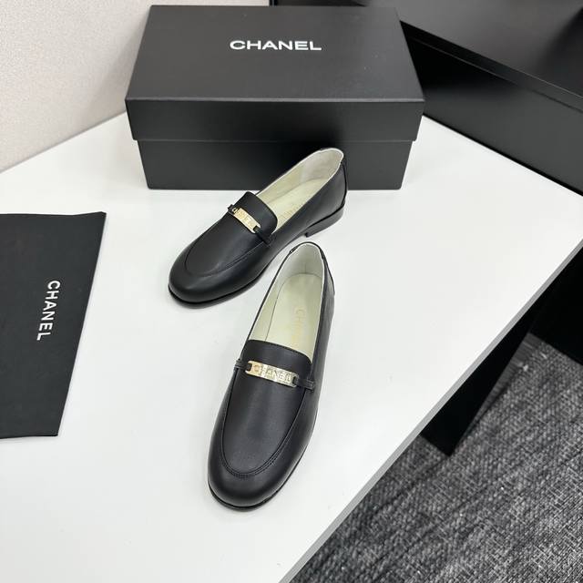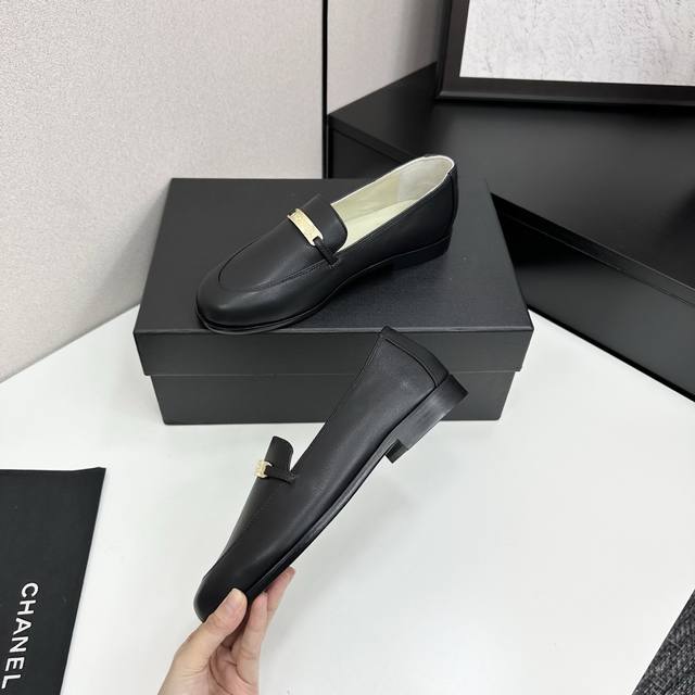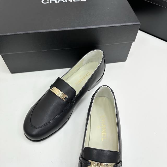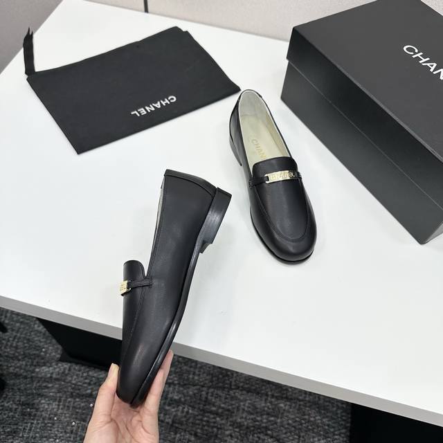 工厂p价 女装女鞋 运动原单 Chanel 25K新款乐福鞋 这一季的乐福鞋很中规中矩 复古帅气还随性黑金两个颜色 都值得入 搭配完全无负担 鞋面牛皮 内里羊皮