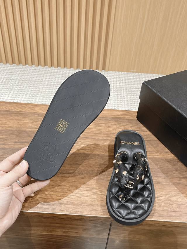 Chane*新款翻盖半拖鞋 经典logo装饰简约大气 精致的高级感 百搭又减龄 各种穿搭都能驾驭. 鞋面进口羊皮 内里垫脚羊皮...