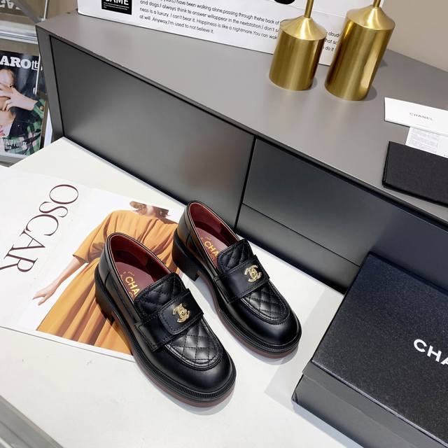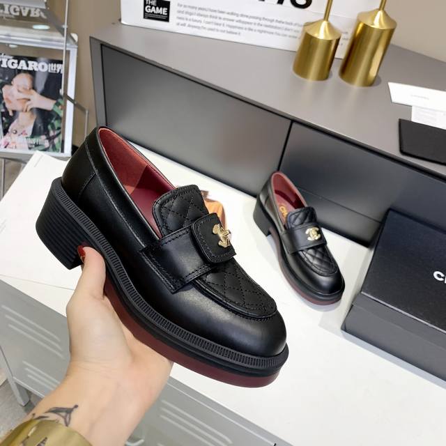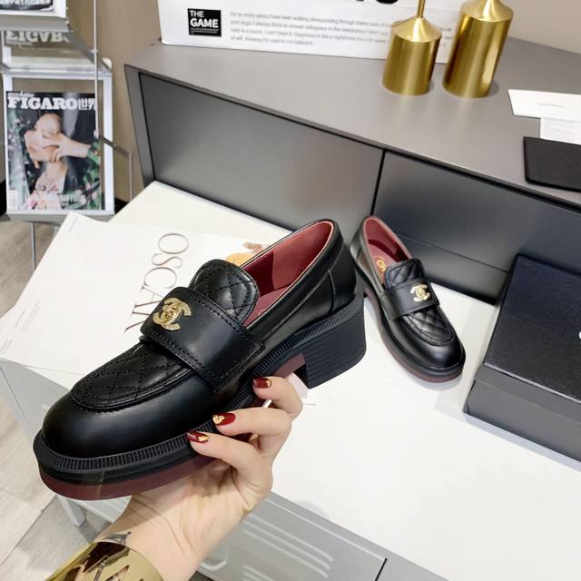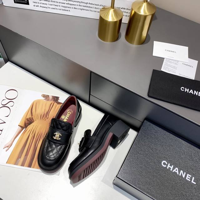 / 批发直销 Chanel秋冬新款,今年最火爆的乐福鞋,小红书疯狂种草的一款,书包扣子超级好看,鞋型百搭,5cm的跟高,绝对的长腿神器!经典的黑色,yyds专柜以8