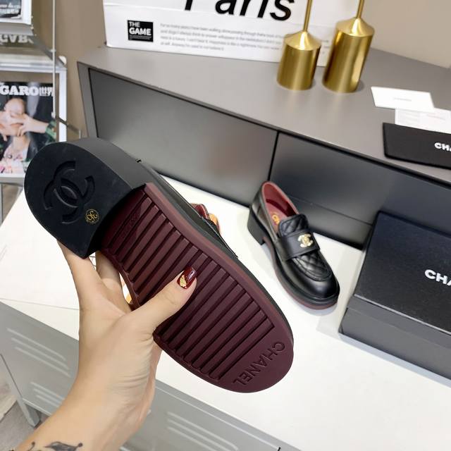 批发直销 Chanel秋冬新款,今年最火爆的乐福鞋,小红书疯狂种草的一款,书包扣子超级好看,鞋型百搭,5cm的跟高,绝对的长腿神器!经典的黑色,yyds专柜以8