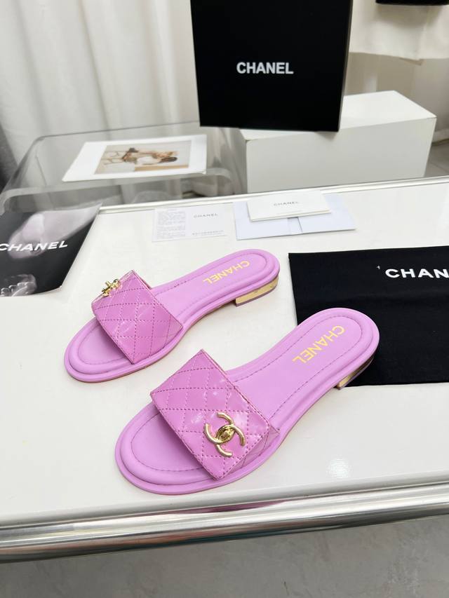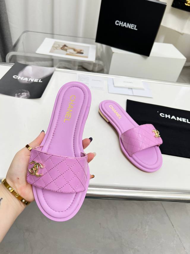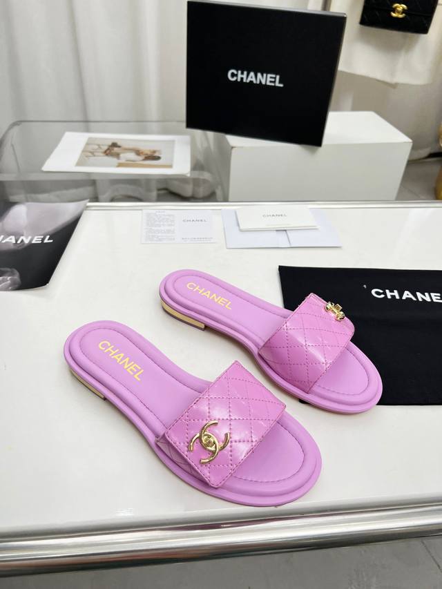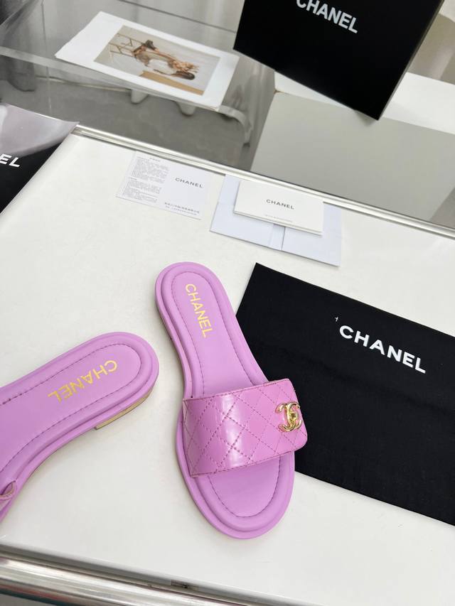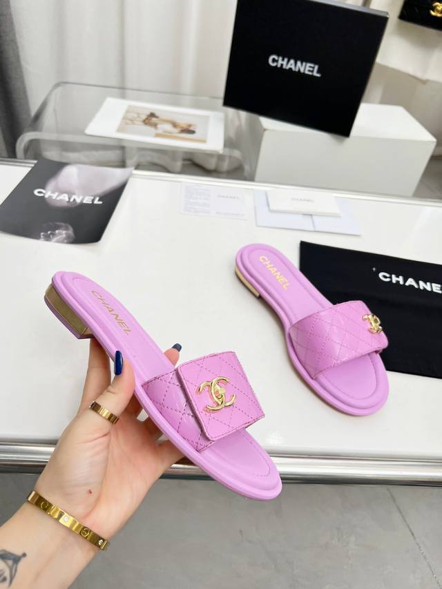 Chane*新款翻盖半拖鞋 经典logo装饰简约大气 精致的高级感 百搭又减龄 各种穿搭都能驾驭. 鞋面进口羊皮 内里垫脚羊皮...