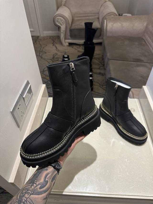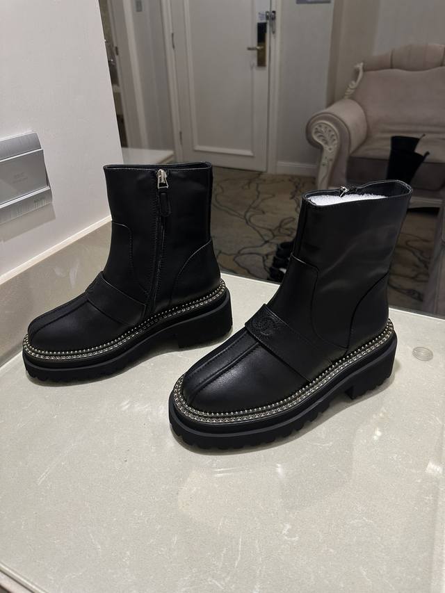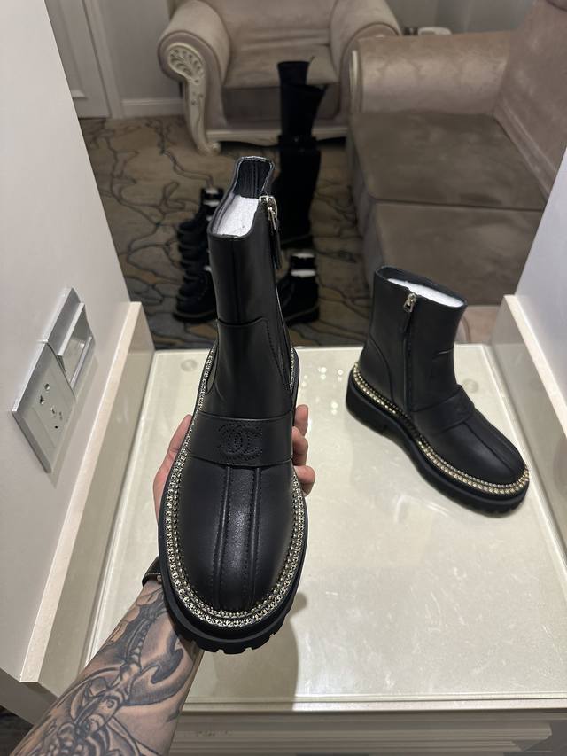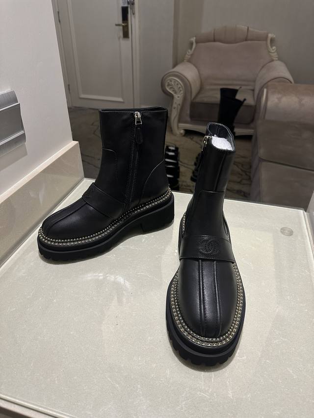 矮: 高:330弹270CHANEL香奈儿sss独家秋冬高端定制,各大明星网红走秀款百年经典!独家巨献!重磅来袭!!!意大利专业调楦师调楦。版型堪称完美 极致奢华,顶级版本秒杀市场所有版本香奈儿牛皮短靴,手感柔软,穿着舒适.工艺非常完美哦,欢迎对比 。真正1:1复刻。皮料:进口小牛皮。内里:羊皮。tpu发泡大底,上脚超轻超软超舒服!码数;35-41。
