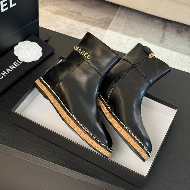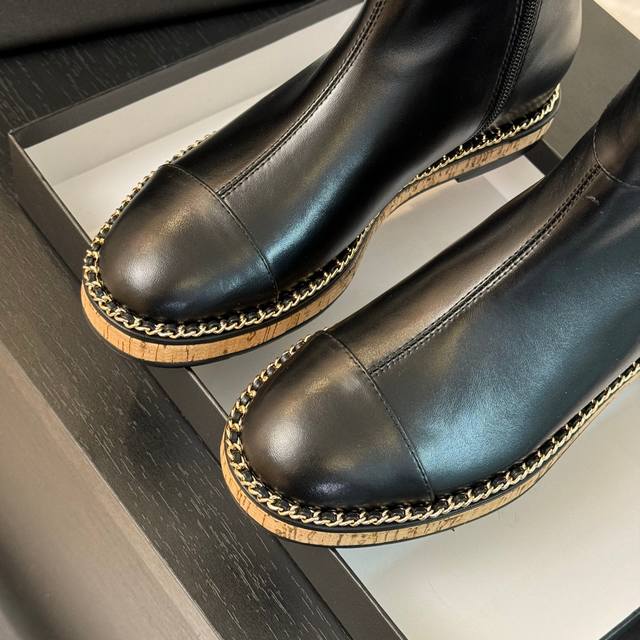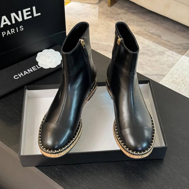 秋冬新款Chane*字母扣内增高短靴 长靴