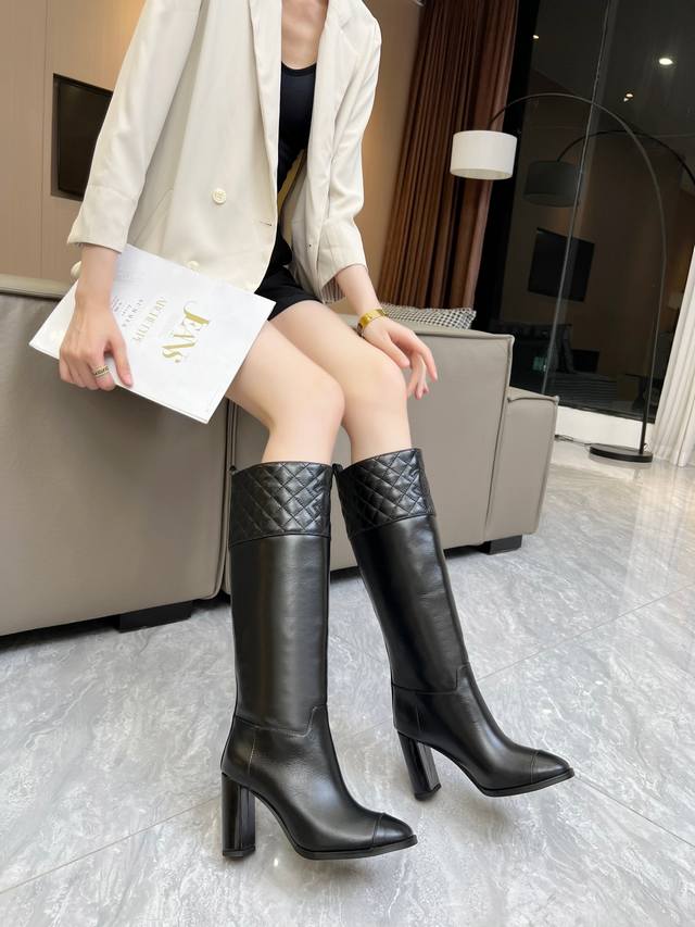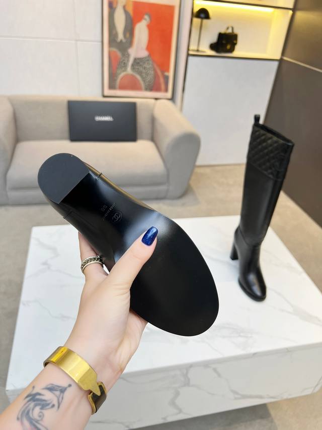 香奈尔秋冬季必备 菱格机车长靴 ,小香家超级经典的一款,甜酷造型 上脚轻松增高又拉长腿型 搭配电绣洋气又时髦 原版一比一复刻 面料:马油皮 跟高:8 内里:羊皮