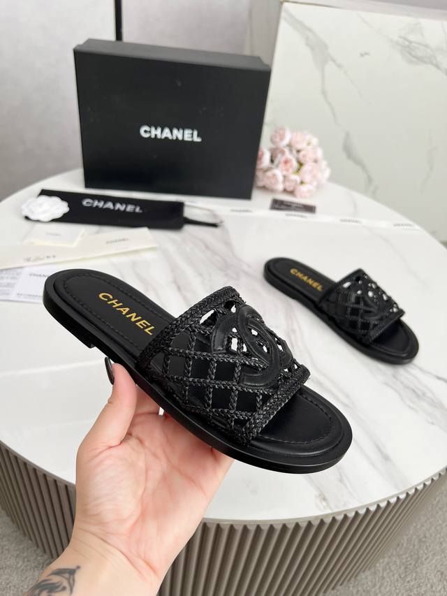 2025春夏新款Chanel香奈儿这款白色拖鞋,尽显奢华格调。鞋面饰以标志性双 C 元素,搭配精致格纹编织,轻盈又优雅,细节之处满是品牌辨识度。简约的平底设计,贴合脚型,带来舒适穿着体验。无论是搭配休闲的短裤、裙装,还是简约的套装,都能轻松提升时尚感,彰显穿着者的精致品味与优雅气质,是时尚人士打造精致造型的绝佳单品。