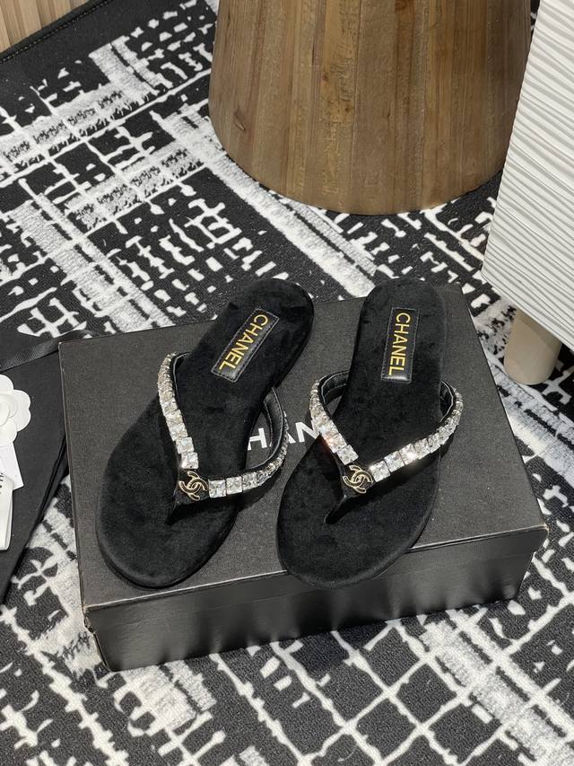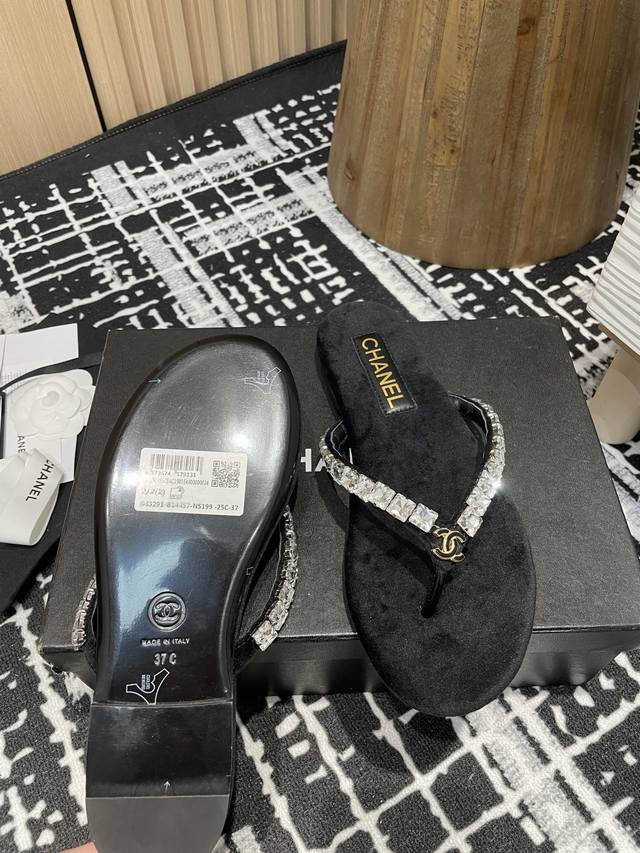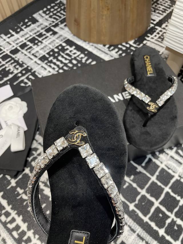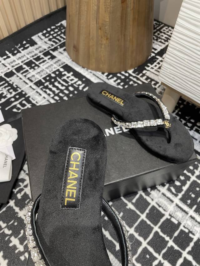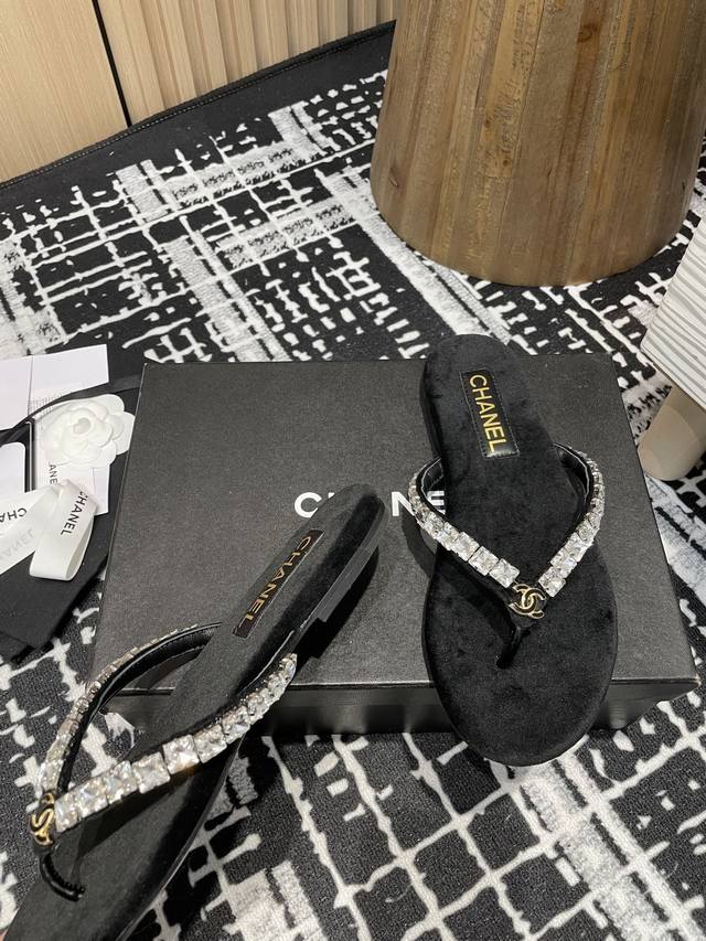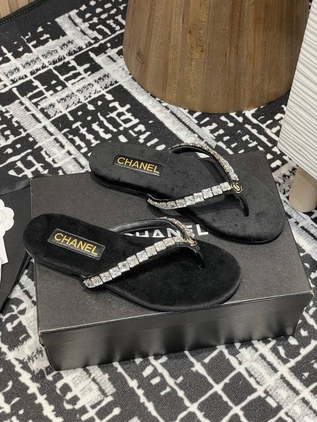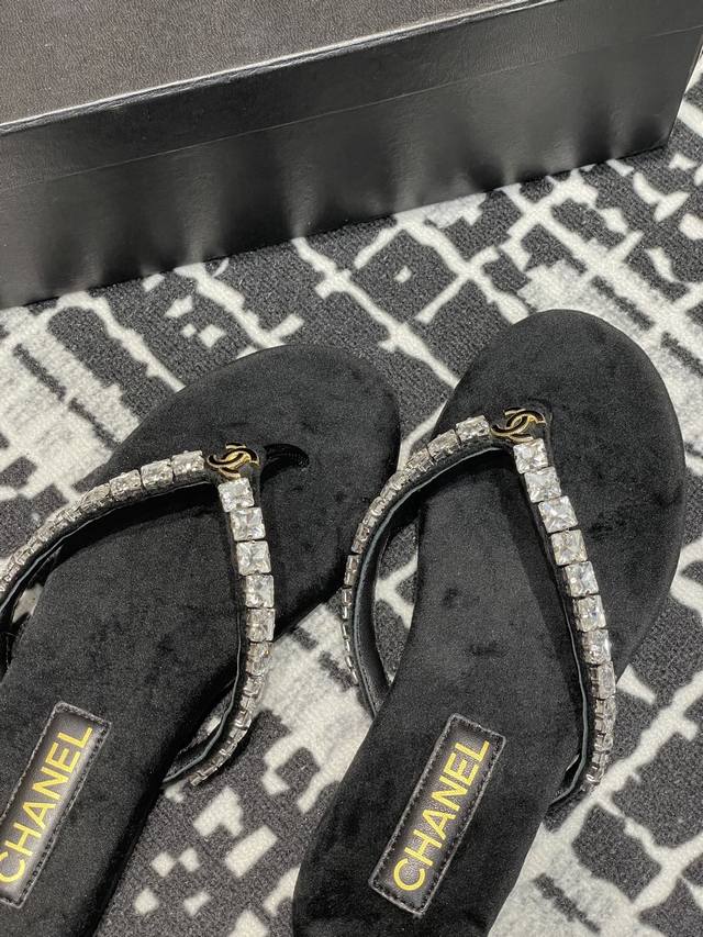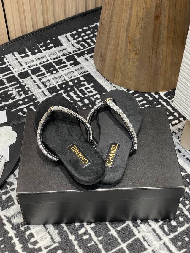 25Fw夏季新款Chane*小香链条珍珠水钻夹脚人字拖鞋