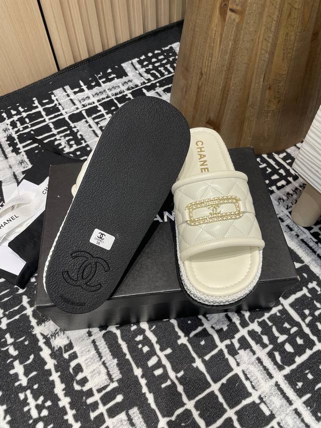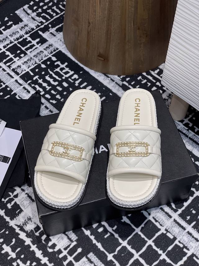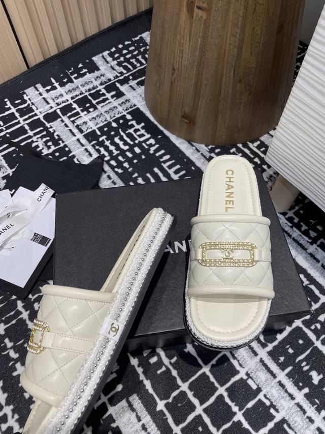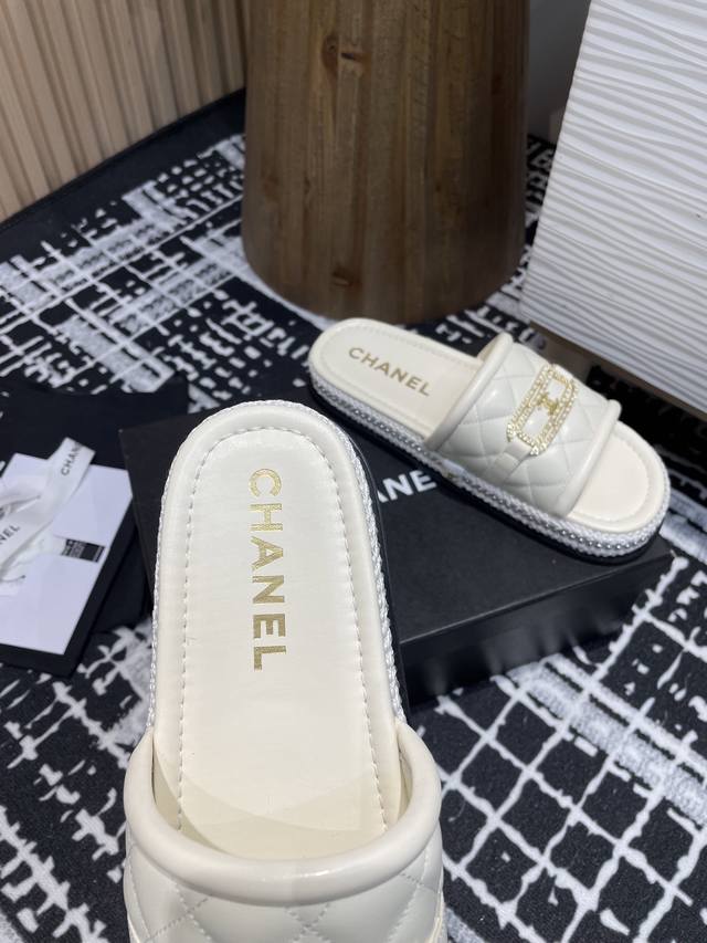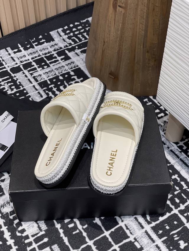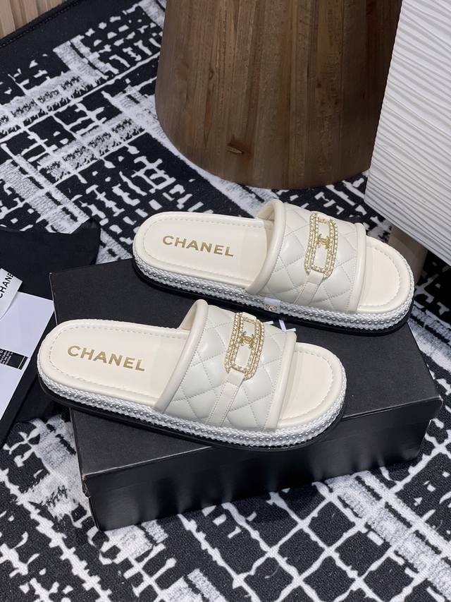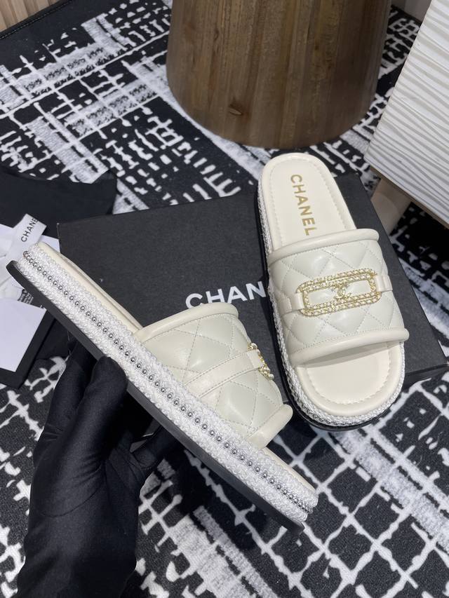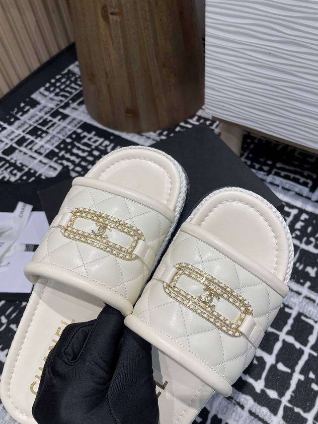 菱格链条双C懒人拖鞋草编珍珠圈边香奶奶家一贯的优雅名媛气质高级感十足!上脚非常nice~