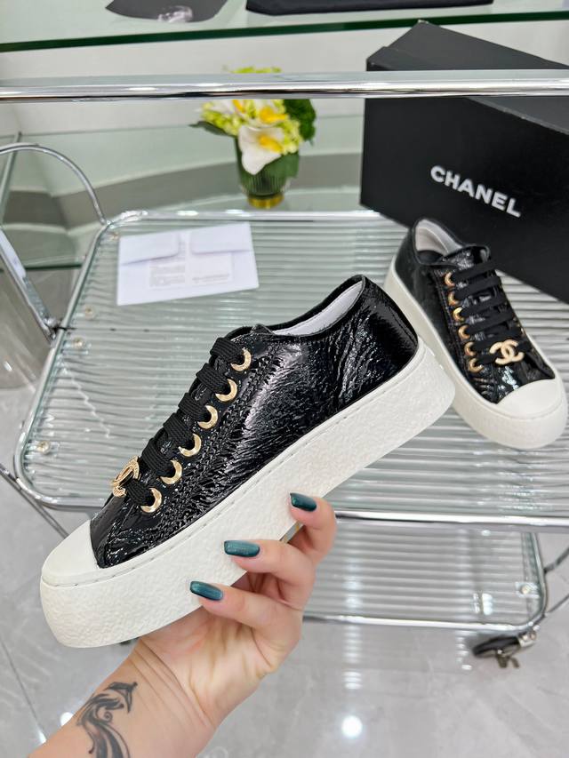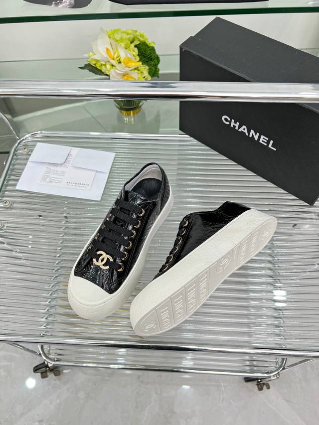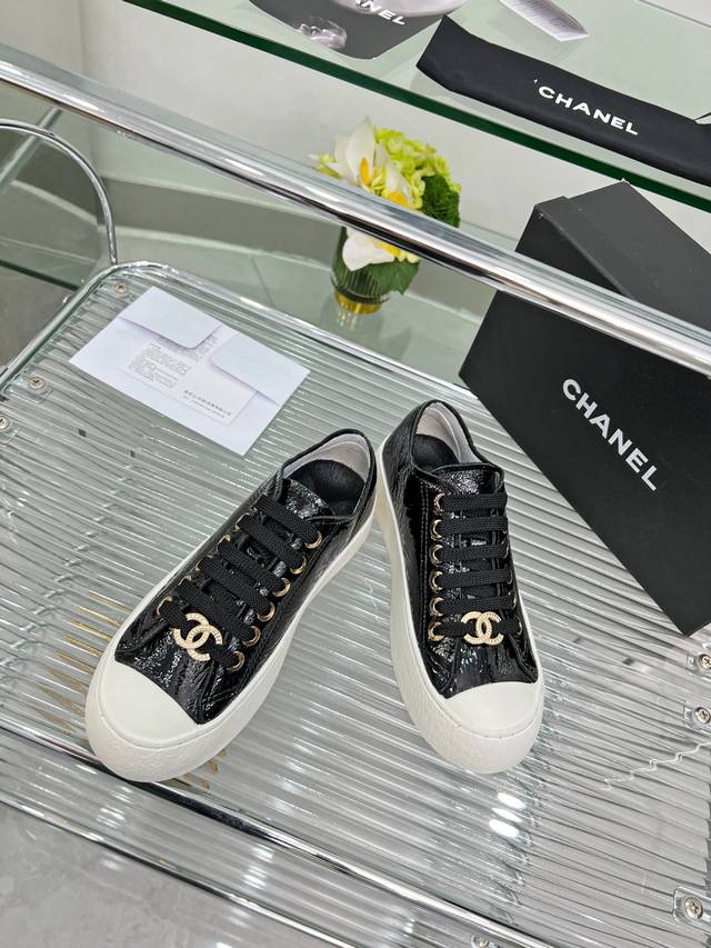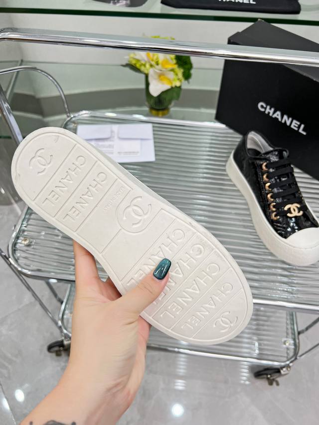 Chanel 早春新款王炸爆款包头鞋小香c家新款系带休闲鞋 板鞋 运动鞋 本季必入款,1:1定制,米兰走秀主推款Tpu立体浮雕双c Logo 大底,面料,皱牛漆