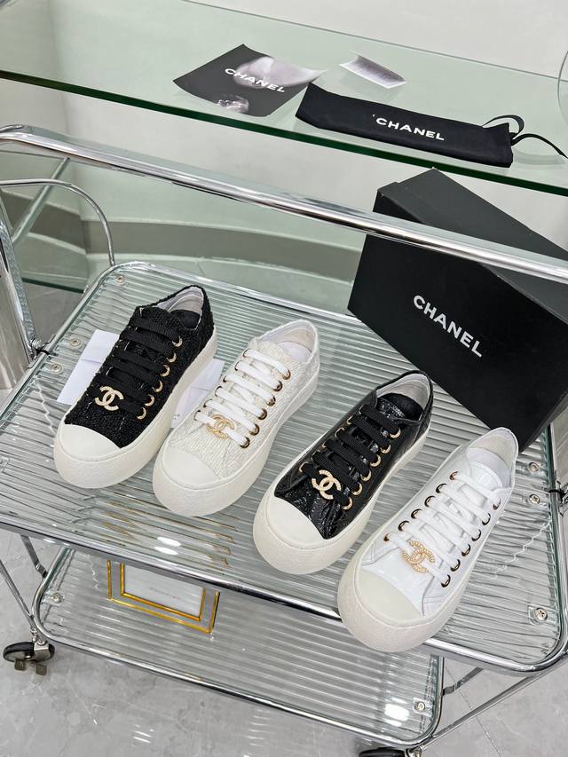 / Chanel 早春新款王炸爆款包头鞋小香c家新款系带休闲鞋 板鞋 运动鞋 本季必入款,1:1定制,米兰走秀主推款Tpu立体浮雕双c Logo 大底,面料,皱牛漆