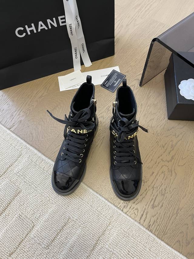 Chanel 24S秋冬新款字母马丁靴 顶级版本!抢先发售 鞋面小羊皮 羊绒 鞋头和鞋尾牛漆皮 原版定制进口小羊皮菱格鞋面 意大利真皮大底 跟高:4.5cm 码