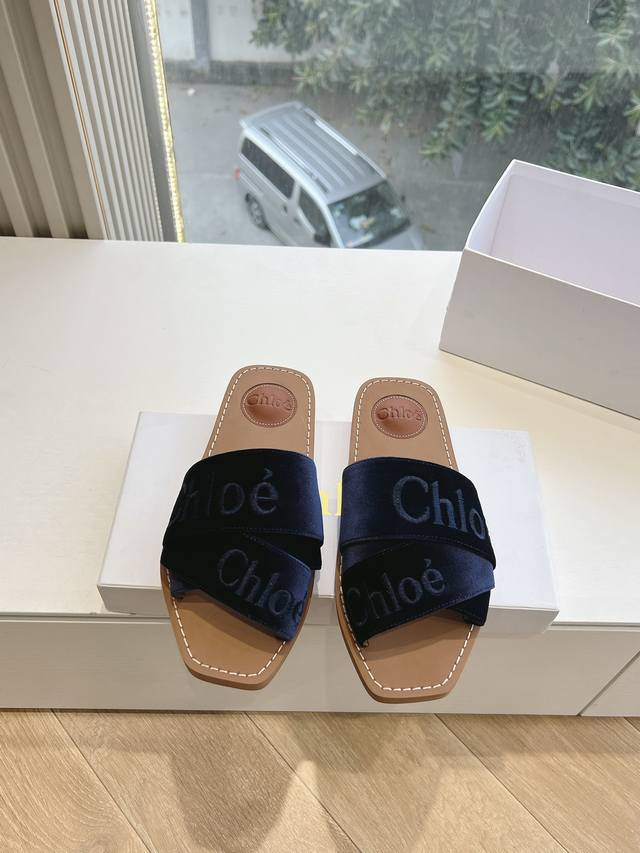 代购级g076Chloe 克洛伊 蔻依经典春夏款刺绣交叉带拖鞋