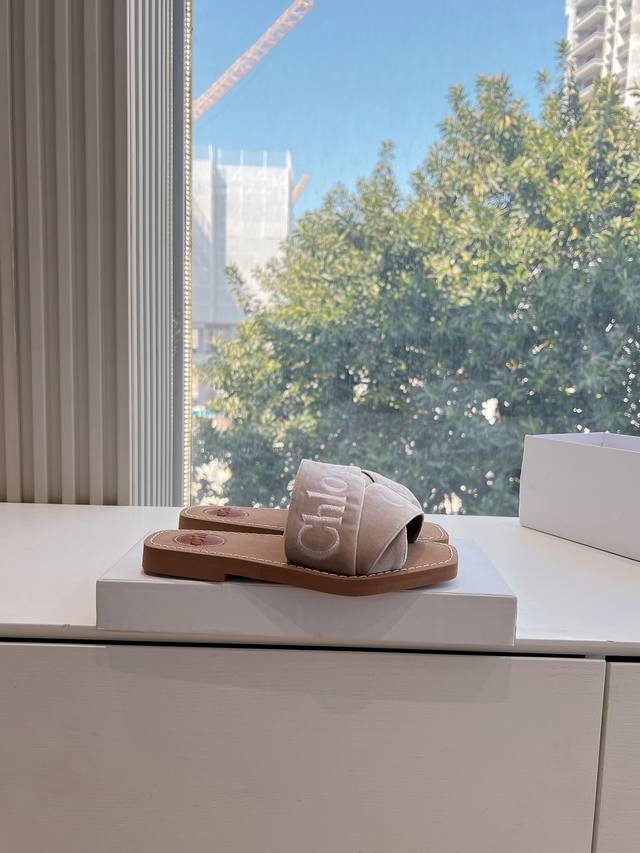 代购级g076Chloe 克洛伊 蔻依经典春夏款刺绣交叉带拖鞋