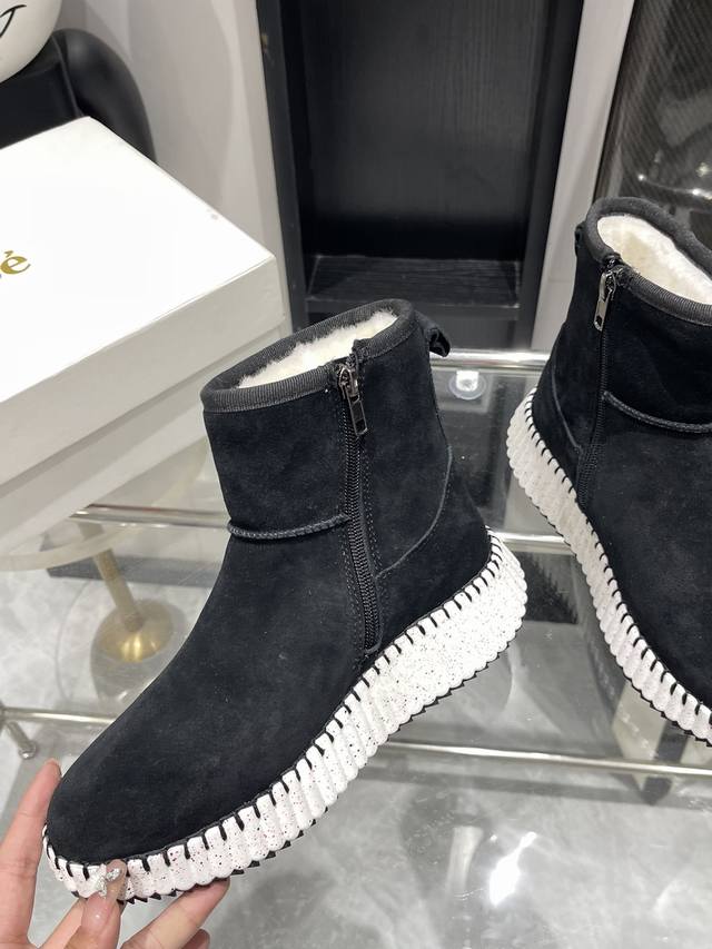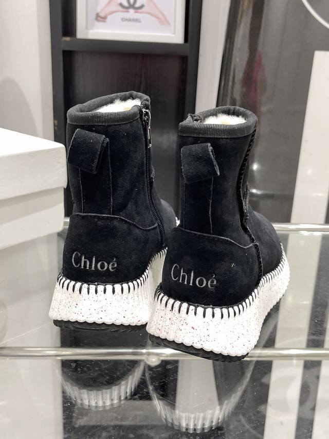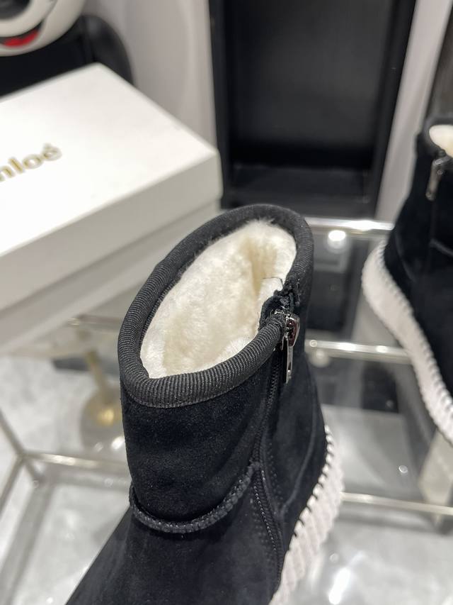 新款 Chloe专柜同步上市新款雪地靴,多色多款,这款面料使用进口牛反绒,内里,真羊毛,质感清爽透气不焖脚 时尚简约范儿 女神都爱 美翻啦 ,5.Cm超轻橡胶发