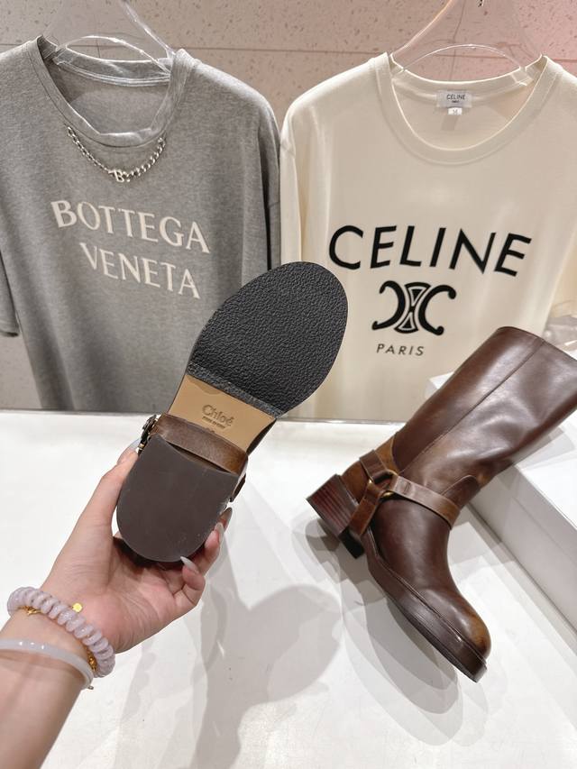 Chloe-克洛伊F039蔻依 25Ss秋冬新款复古机车靴粗跟厚底切尔西靴中筒靴