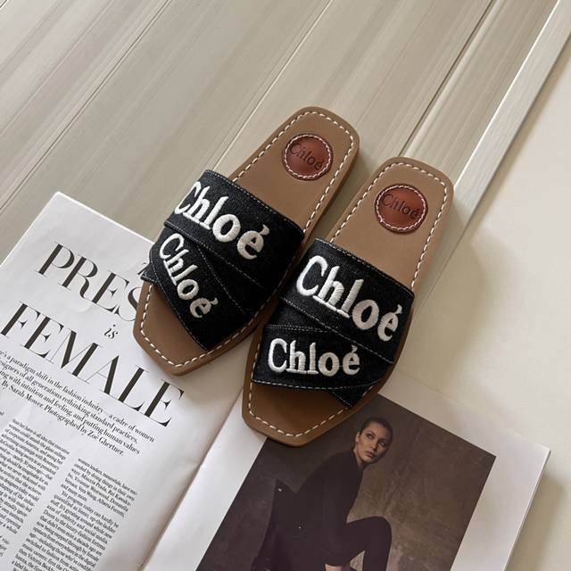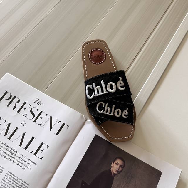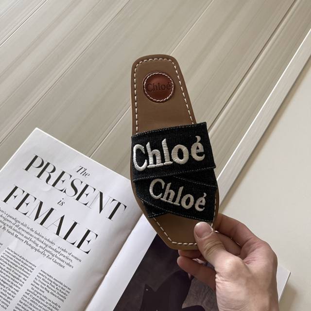 官网上新 全球首发 克洛伊CHloe 24初夏-牛仔布系列交叉拖 Chloe拖 chloe潮鞋