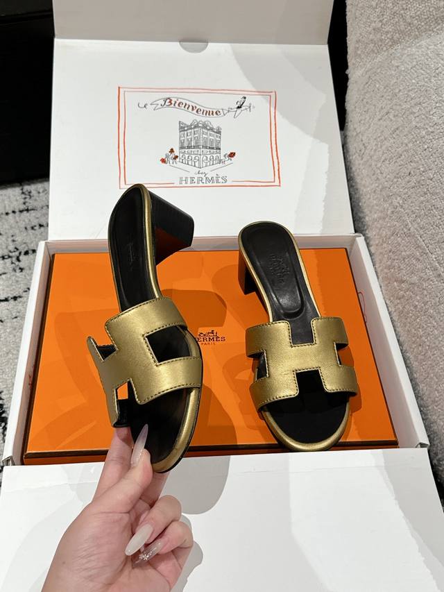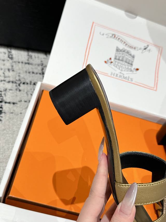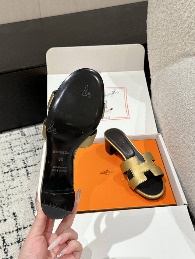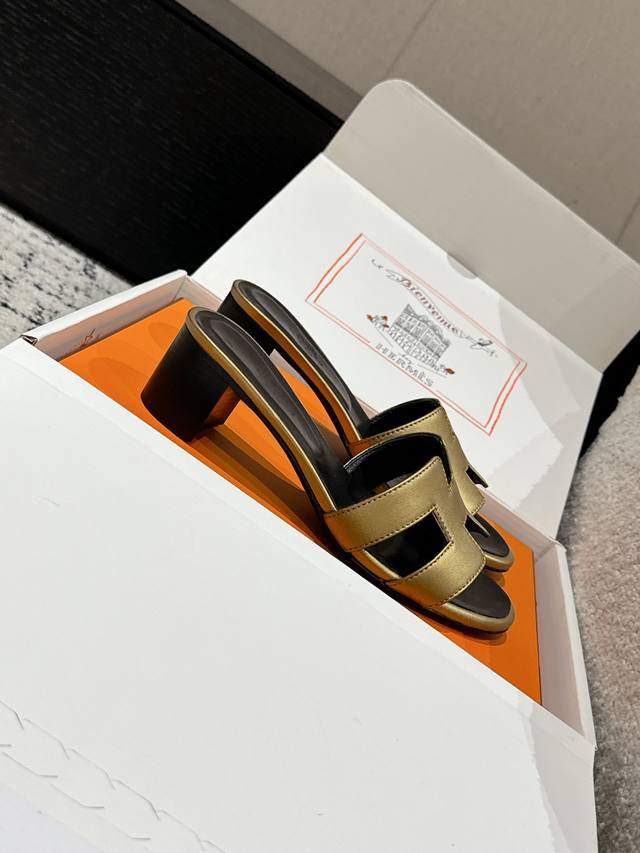 Hermes爱马仕 25 Oasis系列 H经典拖 高跟 一字拖鞋