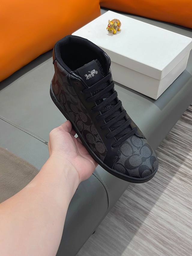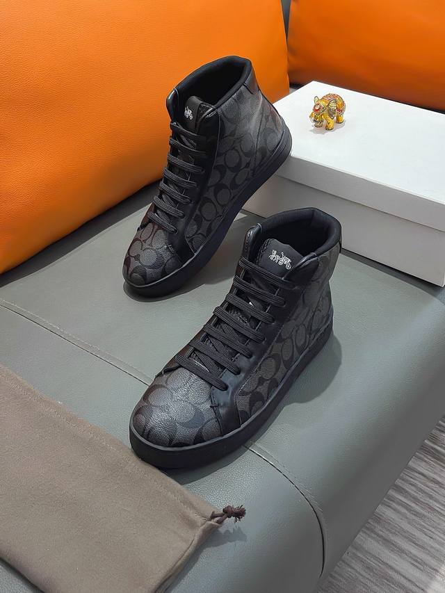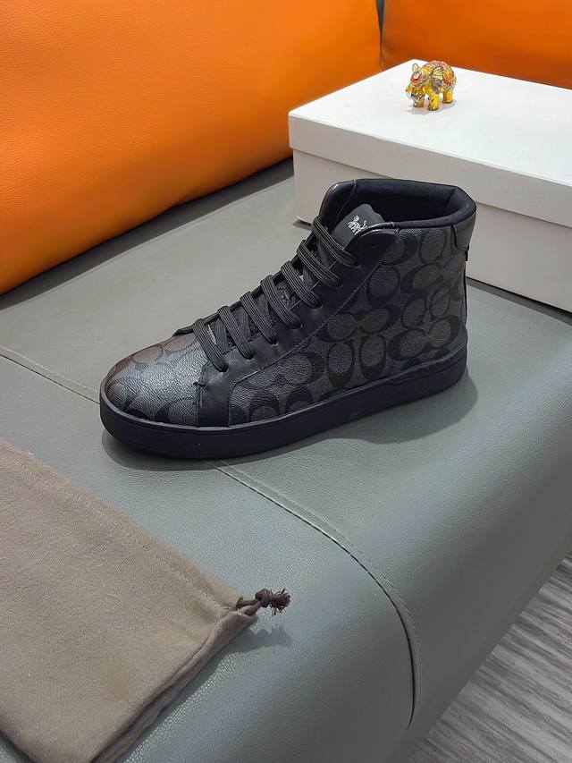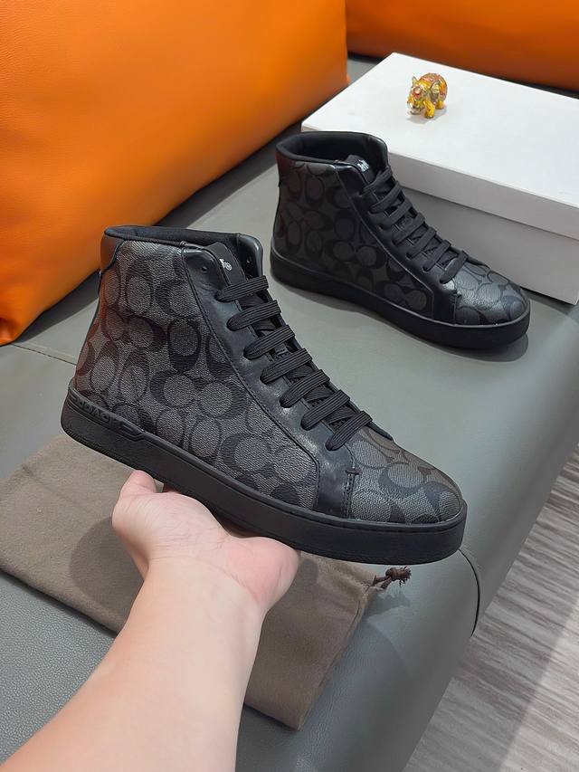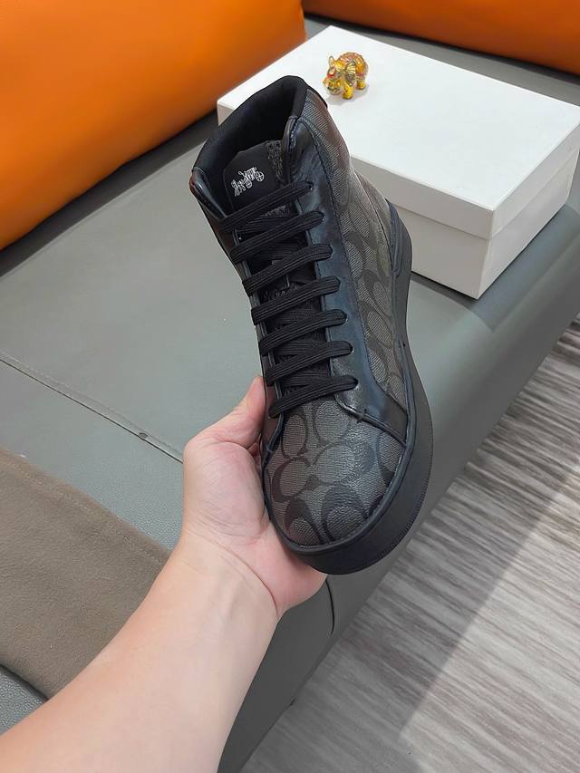 商品名称:Coach 寇驰正规码数: 38-44 高帮鞋商品材料:精选 牛皮鞋面,柔软羊皮垫脚;原厂特供大底