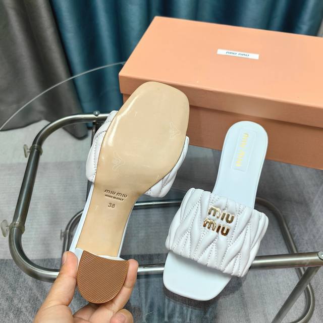 Miumiu缪缪春夏秀款拖鞋 25秀款出镜率最高单品 简约鞋面金色Miumiu显得格外的好看时髦