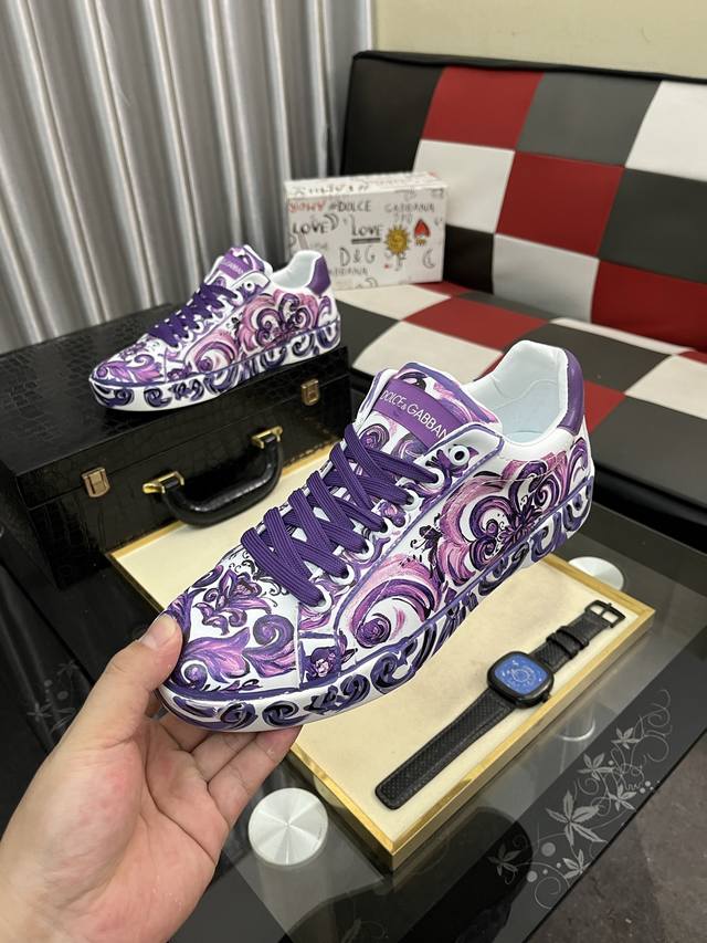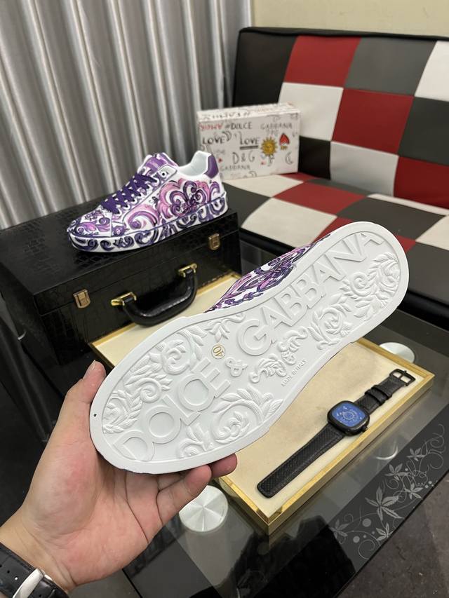 出厂价pp: 新款Dolce&Gabbana 顶级原单Dg重工系列,新款休闲时尚鞋版型简洁大气,时尚专属时尚又大方。原版进口小牛皮,舒适的羊皮内里。精致奢华,超A级别!版型对比,丝毫不差Size:36-46