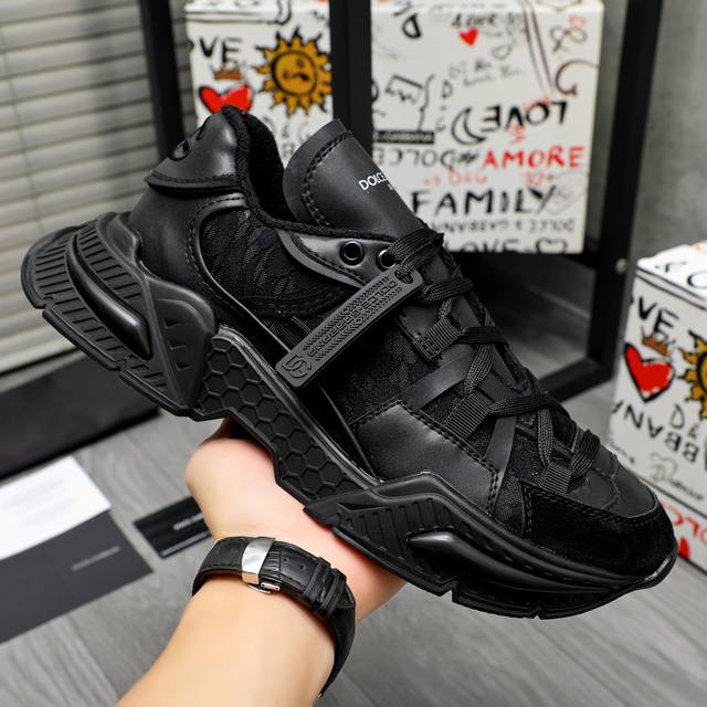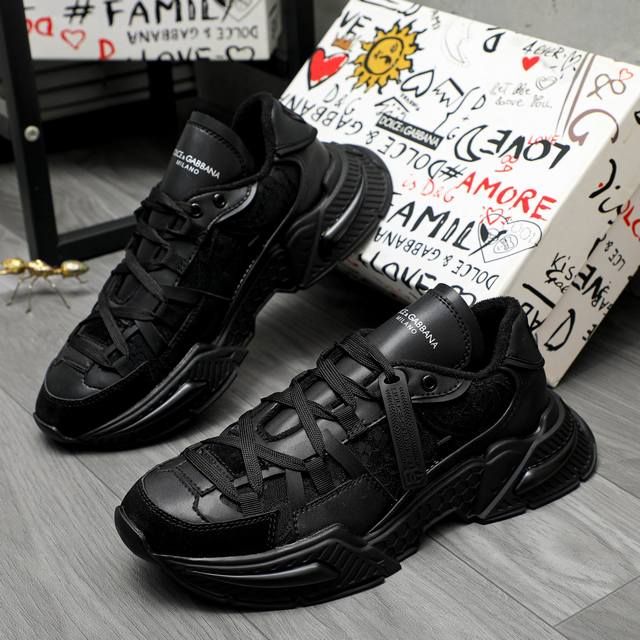 商品商标:D&G 杜嘉班纳 休闲鞋 正码码数: 35-46 情侣款 商品材料:精选牛皮拼接鞋面 牛皮鞋垫 浅绒内里 原版大底