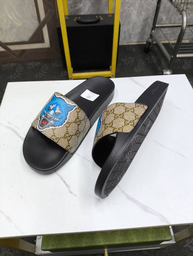 / 实价 情侣款 GUCCI-古奇 百搭休闲拖鞋,进口原版材质,羊皮内里 高档舒适,原版大底轻盈耐磨!纯手工制作,细节决定品质!37-44 35.36.46.47定