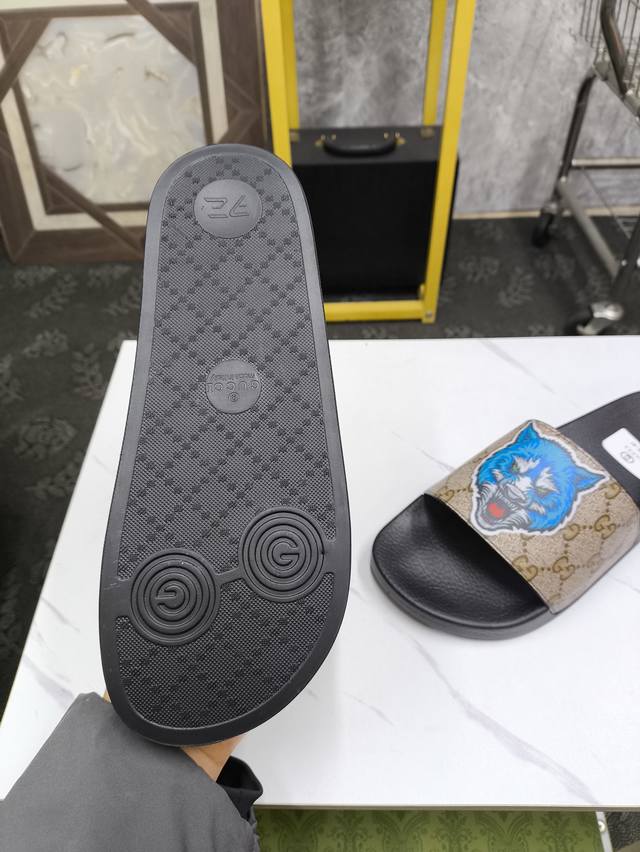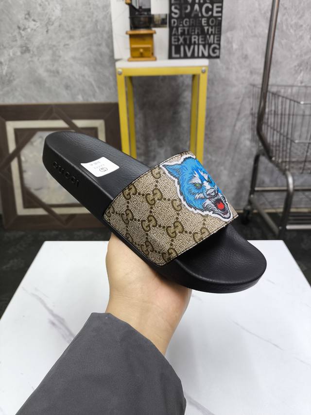 实价 情侣款 GUCCI-古奇 百搭休闲拖鞋,进口原版材质,羊皮内里 高档舒适,原版大底轻盈耐磨!纯手工制作,细节决定品质!37-44 35.36.46.47定
